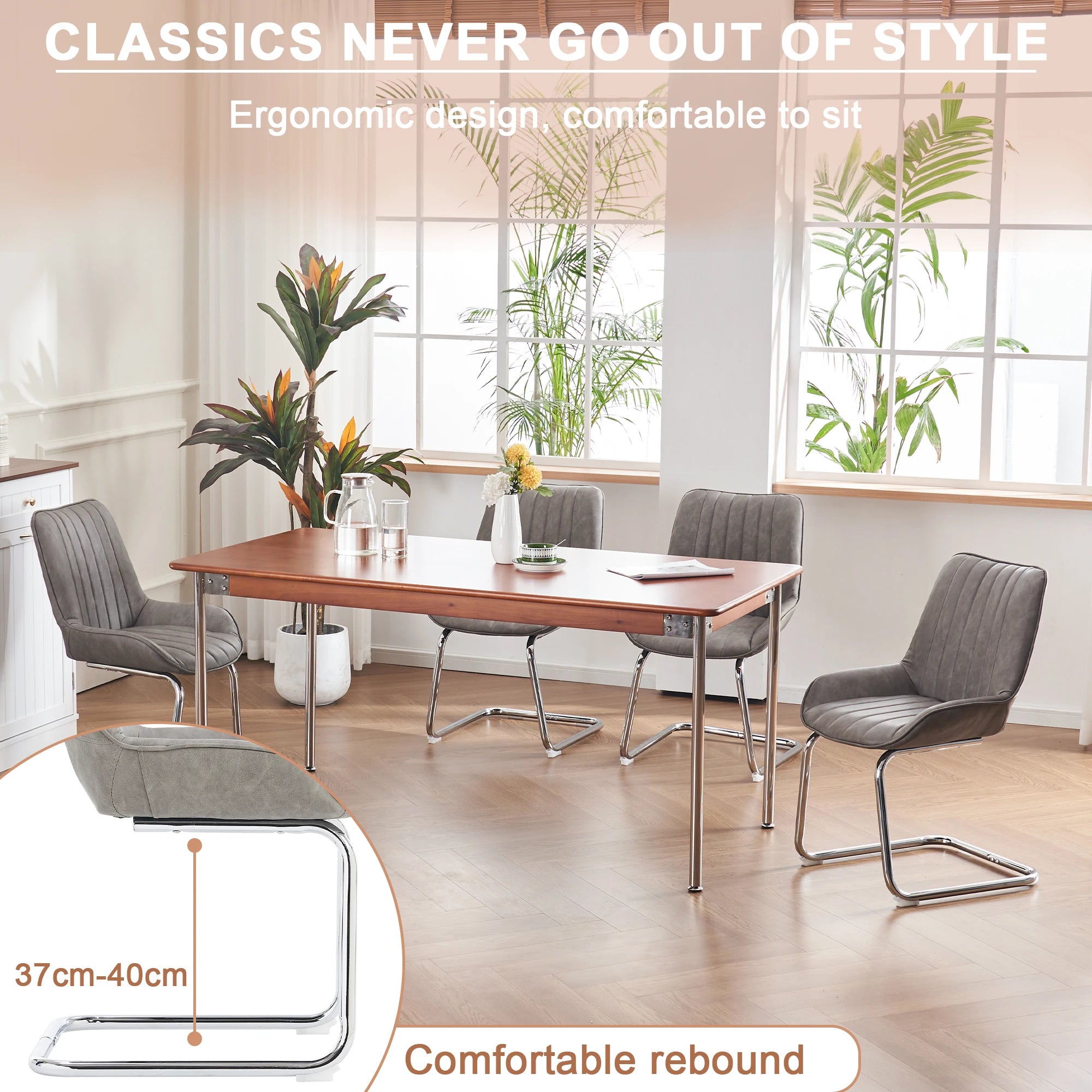 Uuendage oma söögiala selle 2 kunstnahast tooli komplektiga kööki, söögituppa. Lihtsa ja puhta silueti kujundusega sulanduvad need toolid vaevata kaasaegsetesse eluruumidesse, pakkudes samal ajal igapäevast mugavust. Kõrge tihedusega vahtkatted pakuvad pehmet ja toetavat istet, mis aitab vähendada väsimust söömise, töötamise või lõõgastavate vestluste ajal. Libisemisvastased matid jalgadel kaitsevad teie põrandaid kriimustuste eest ja tagavad stabiilse istumise erinevatel pindadel. Lihtne paigaldada ja iseseisev, nad on valmis teie ruumi minutitega täiustama.