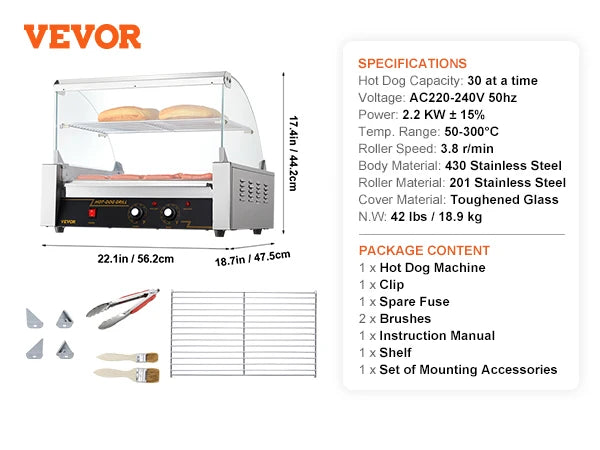 - Kiirendage teenindust punktides või pidudel: küpsetage ja hoidke mitmeid rullikuid optimaalsel temperatuuril, et hot dog'id oleksid valmis serveerimiseks minimaalse ooteajaga.