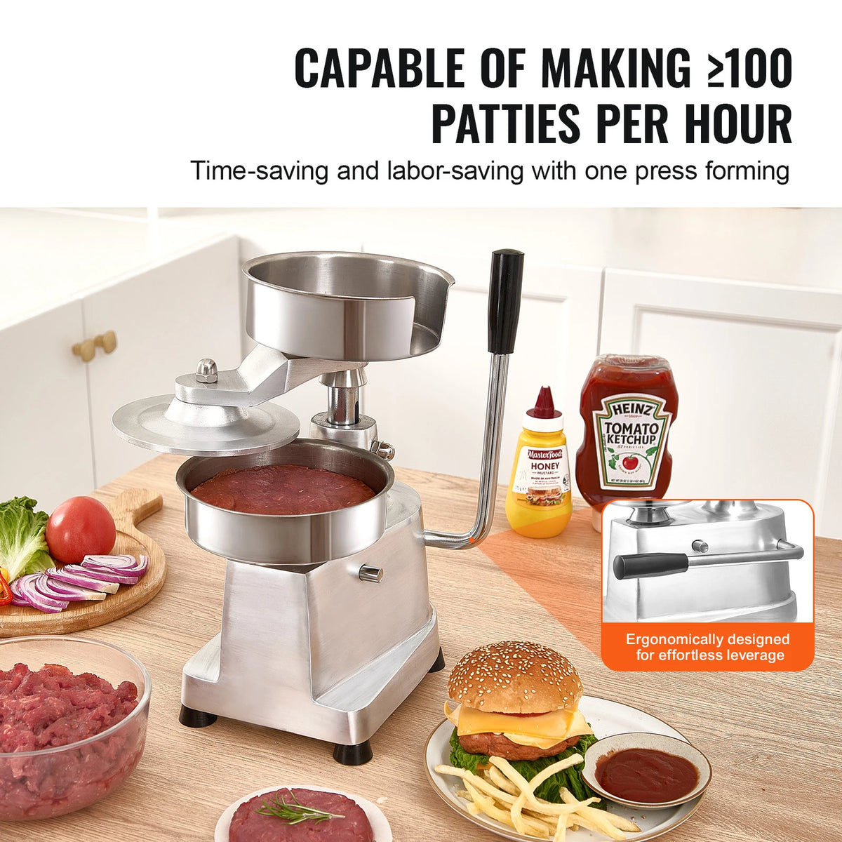 - Aja säästev, kangi juhitav disain võimaldab ≥100 pattyt tunnis — ideaalne hõivatud burgerikohtade, toidubusside ja catering-ürituste jaoks.