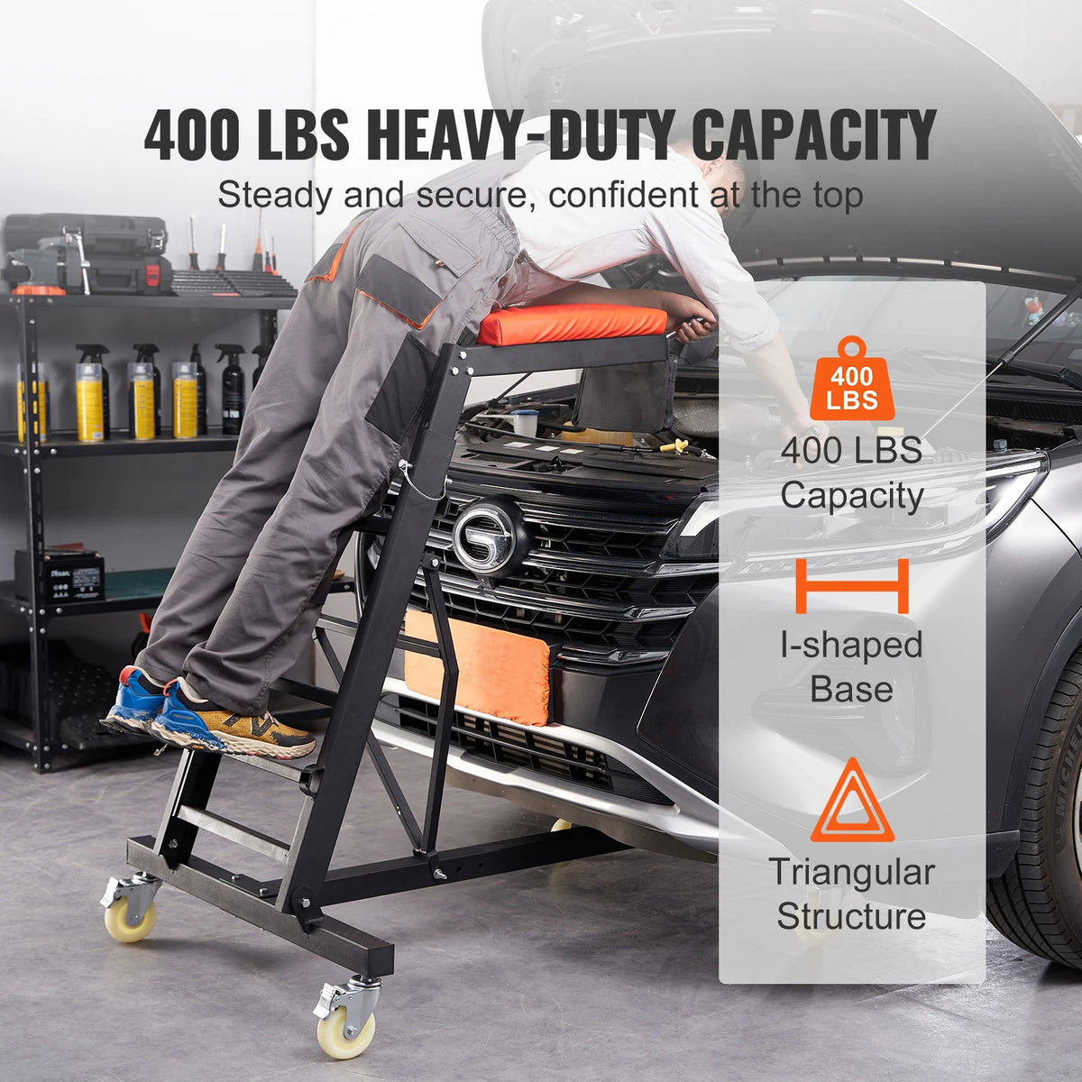 Mugavus on prioriteet pikemate remondiseansside jaoks. 2-tollise paksusega, 12.4 x 18-tollise laiendatud padja pakub heldet tuge ning mugav tööriistakott hoiab olulised remonditarbed käeulatuses. Lai astumislava jaotab kaalu ühtlaselt, et tagada kindel ja väsimust vähendav asend hooldustööde ajal.