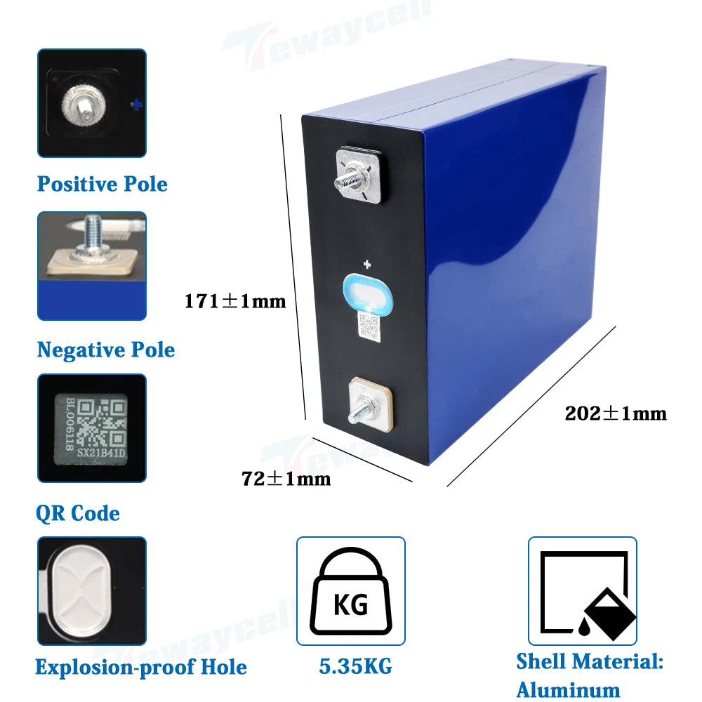 Meet the Tewaycell 3.2V 280Ah LiFePO4 battery prismatic cells, engineered for scalable solar energy storage in 12V, 24V, and 48V systems. Each cell is Grade A with CE certification, delivering a nominal 3.2V and 280Ah capacity with an impressive life of up to 7500 cycles. Built on LiFePO4 chemistry for safety, stability, and wide operating temperature, these modules minimize maintenance while delivering reliable energy for off‑grid homes, microgrids, and solar installations. The compact prismatic form (174 × 72 × 203 mm) and light weight (~5.3 kg) simplify rack mounting and wiring. Set Type: Batteries Only, with options for 4/8/16/32 pieces; busbars and M6 screws are included per battery for quick assembly. They are designed to perform reliably across climates from -20 to 60°C.