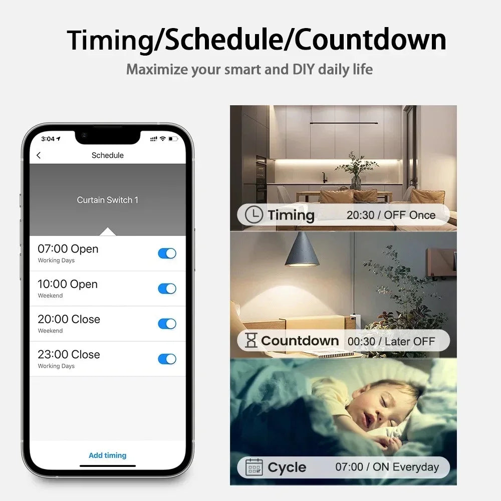 Kasud: See moodul muudab traditsioonilised aknakatte ja ekraani mootoreid nutikateks seadmeteks, elimineerides käsitsi lülitamise ja võimaldades käed-vabad hääle käsud, ajastatud automatiseerimise ja sünkroniseeritud grupijuhtimise. See parandab mugavust, energiatõhusust ja ligipääsetavust, integreerudes sujuvalt olemasolevatesse Tuya ökosüsteemidesse.