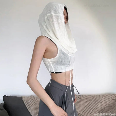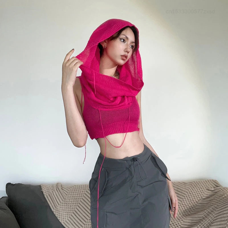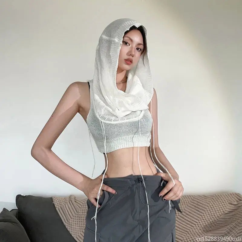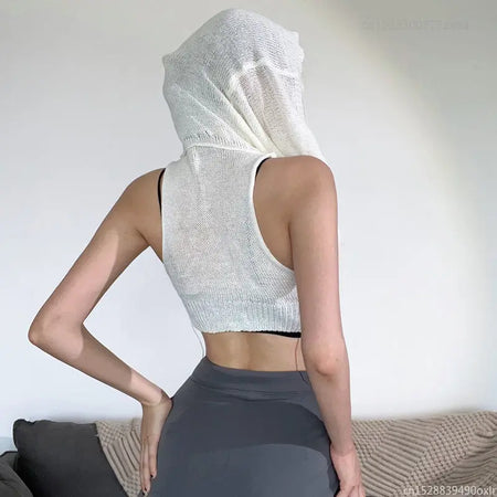 - Stiil: Õõnes kapuutsiga ilma varrukateta tank top