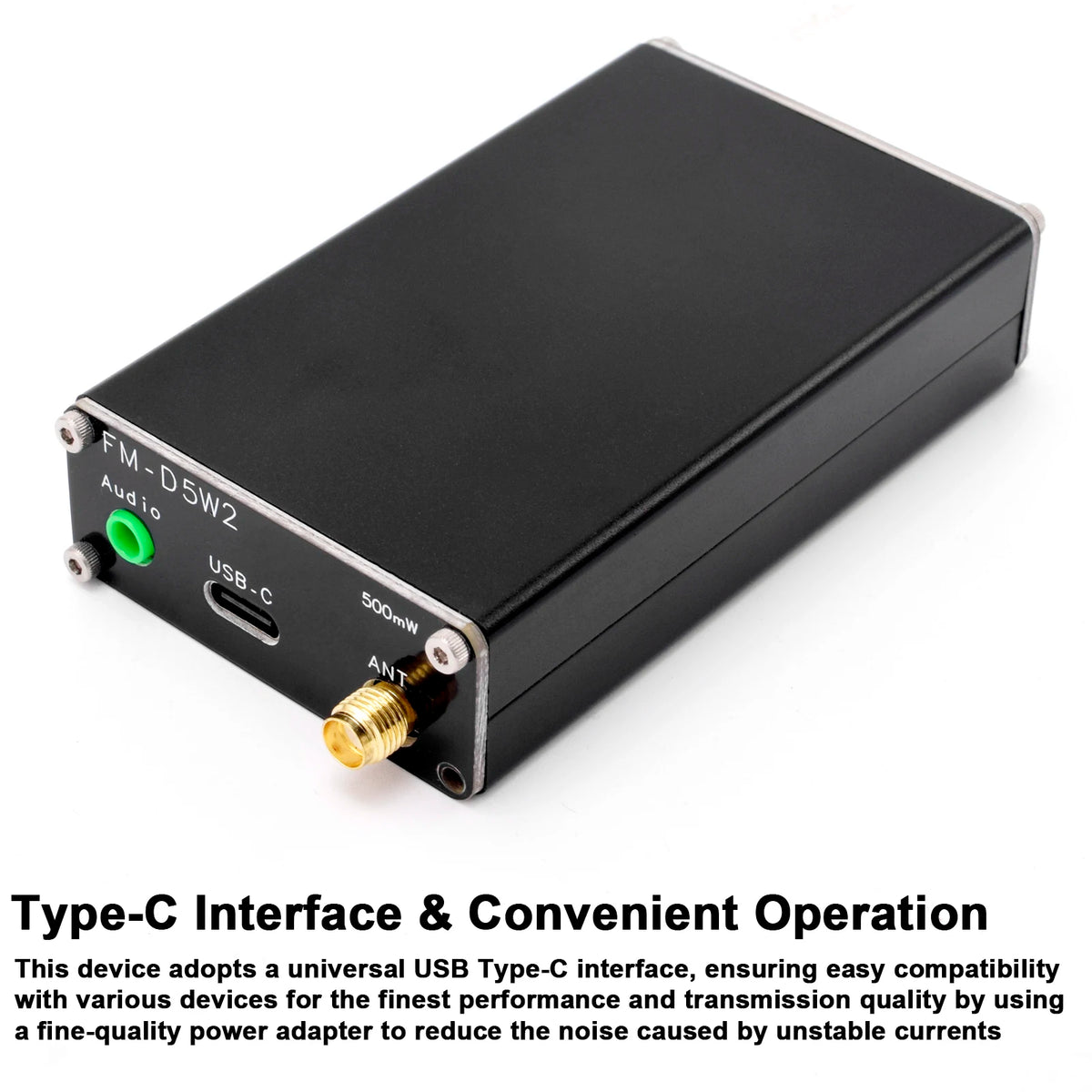 USB Type-C -virran ja kompaktin koon (85 x 50 x 20 mm) ansiosta tämä lähetin on helppo asentaa, kuljettaa ja käyttää avoimilla alueilla. Kun olosuhteet ovat suotuisat ja antenni on optimoitu, se voi saavuttaa pitkiä etäisyyksiä—jopa 2000 metriä—tehden siitä sopivan suurempiin ulkolähetyksiin samalla säilyttäen kirkkaan äänenlaadun (63 dB SNR ja 0,05 % THD).