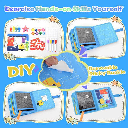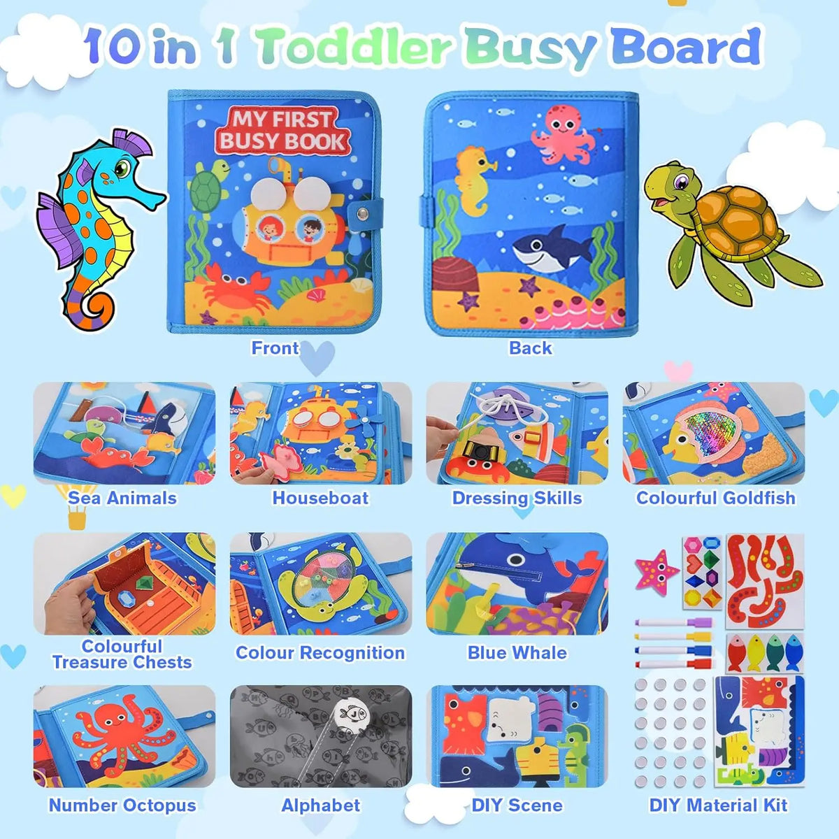 Tutustu 10 In 1 Busy Board Montessori -leluun, jossa on kiehtova 3D-meriteema, suunniteltu 1–5-vuotiaille lapsille. Tämä monipuolinen busy book yhdistää Montessori-inspiroitua oppimista rauhallisen kirjakokemuksen kanssa, tarjoten 10 sivua, joista jokainen esittää erilaisen merimaiseman, joka haastaa mutta kiehtoo nuoria mieliä.