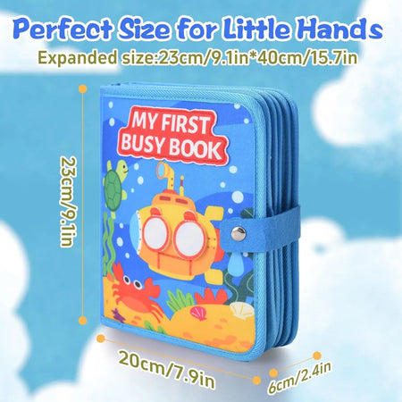 Kevyestä, myrkyttömästä huovasta valmistettu Busy Board on suunniteltu turvalliseen, kestävään leikkiin. Kaksoisompeleet lisäävät kestävyyttä, ja sen kompakti koko mahtuu helposti vaippalaukkuihin tai koululaukkuihin oppimista varten. Meriteema parantaa aistillista tutkimista samalla kun se tukee hienomotoristen taitojen, käsi-silmä-koordinaation, keskittymisen ja luovuuden kehitystä.