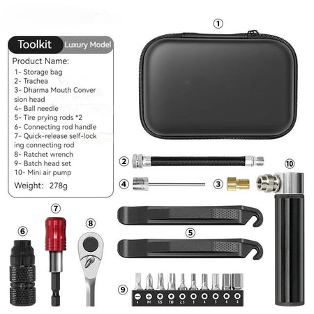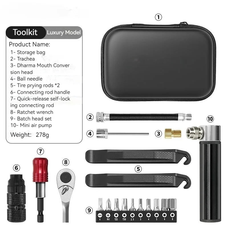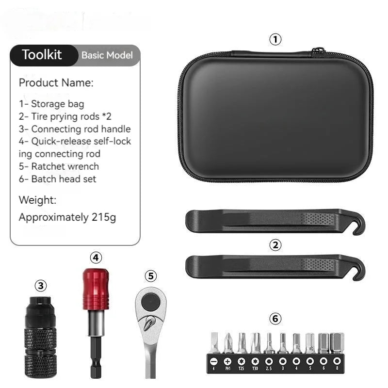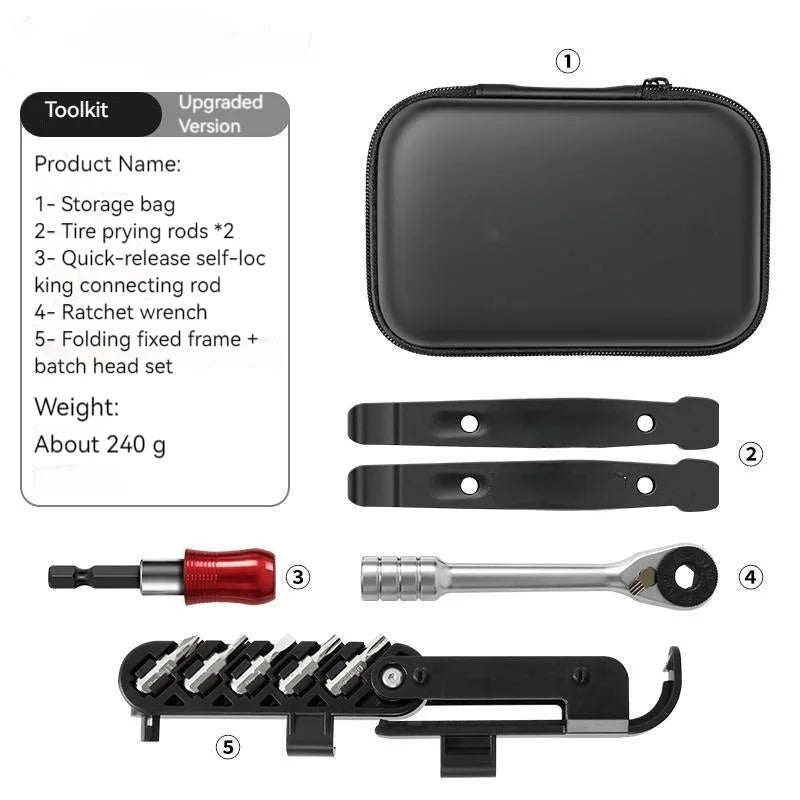 Olitpa sitten säätämässä pultteja, vaihtamassa putkia tai tekemässä nopeita säätöjä ajon aikana, tämä työkalupakki antaa sinulle luotettavaa vääntöä ja vipu pääsyä silloin, kun sitä tarvitset eniten. Kestäväksi ja käytännölliseksi rakennettu se auttaa sinua ajamaan pidempään vähemmillä keskeytyksillä.
