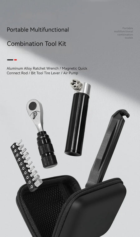 Valmistaudu liikkeellä olevaan pyörän huoltoon Kannettavalla Pyörätyökalupakilla, jossa on monipuolinen ratchet-avain ja rengaslevy. Tämä kompakti työkalusarja on suunniteltu päivittäisiin ajoihin, viikonloppuseikkailuihin ja hätäkorjauksiin, auttaen sinua käsittelemään yleisiä tienvarsiongelmia nopeasti ja luottavaisesti. Sen kevyt muotoilu mahtuu helposti satulalaukkuun tai reppuun, joten voit pitää pyöräsi huippukunnossa ilman, että sinun tarvitsee kantaa suuria varusteita.