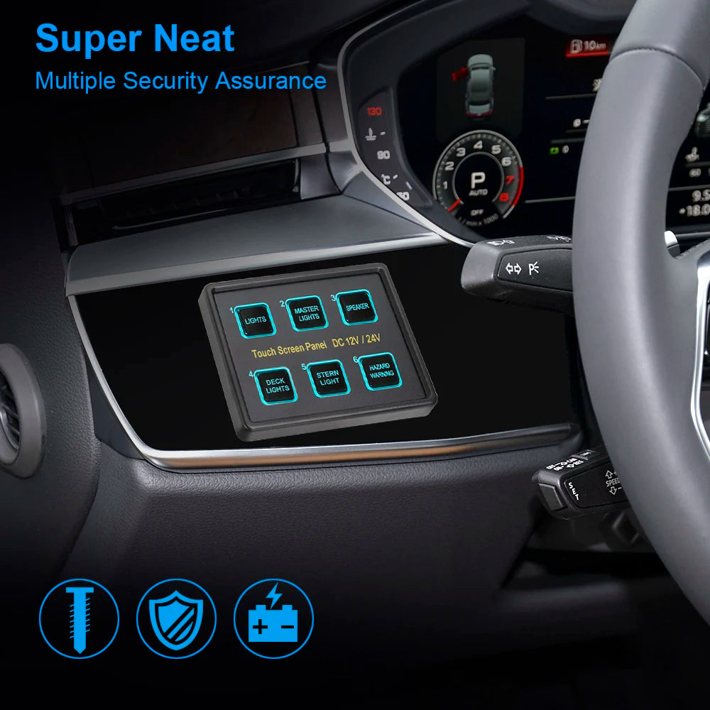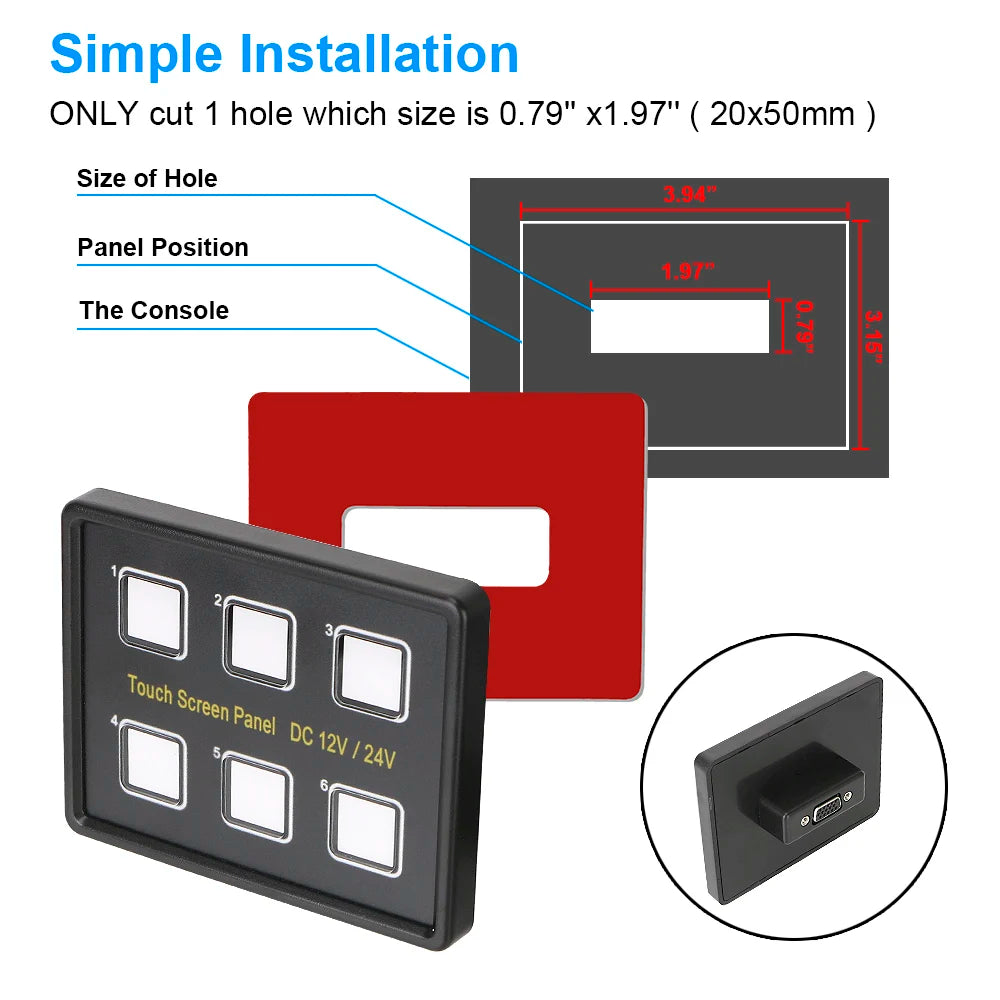 - Tehokas monipiirikontrolli: Käytä 6-gang kosketuskytkinpaneelia hallitaksesi valaistusta, lisälaitteita, tuulettimia tai muita ajoneuvon elektroniikkaa yhdellä, intuitiivisella käyttöliittymällä.