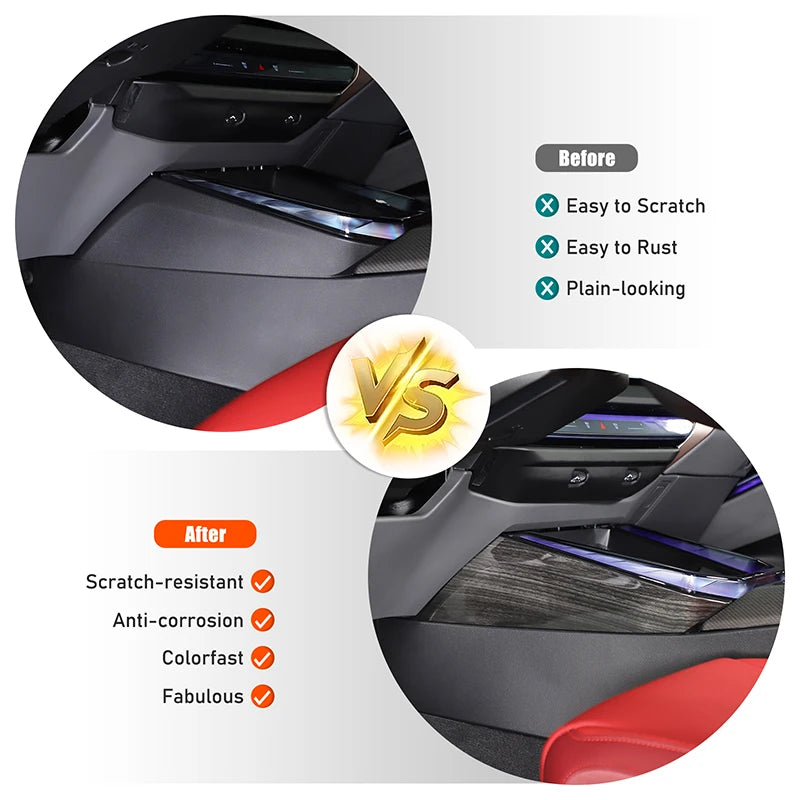 - Tarjoaa pintasuojan keskikonsolin alueelle naarmuja ja kulumista vastaan.