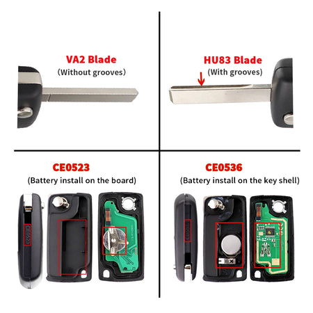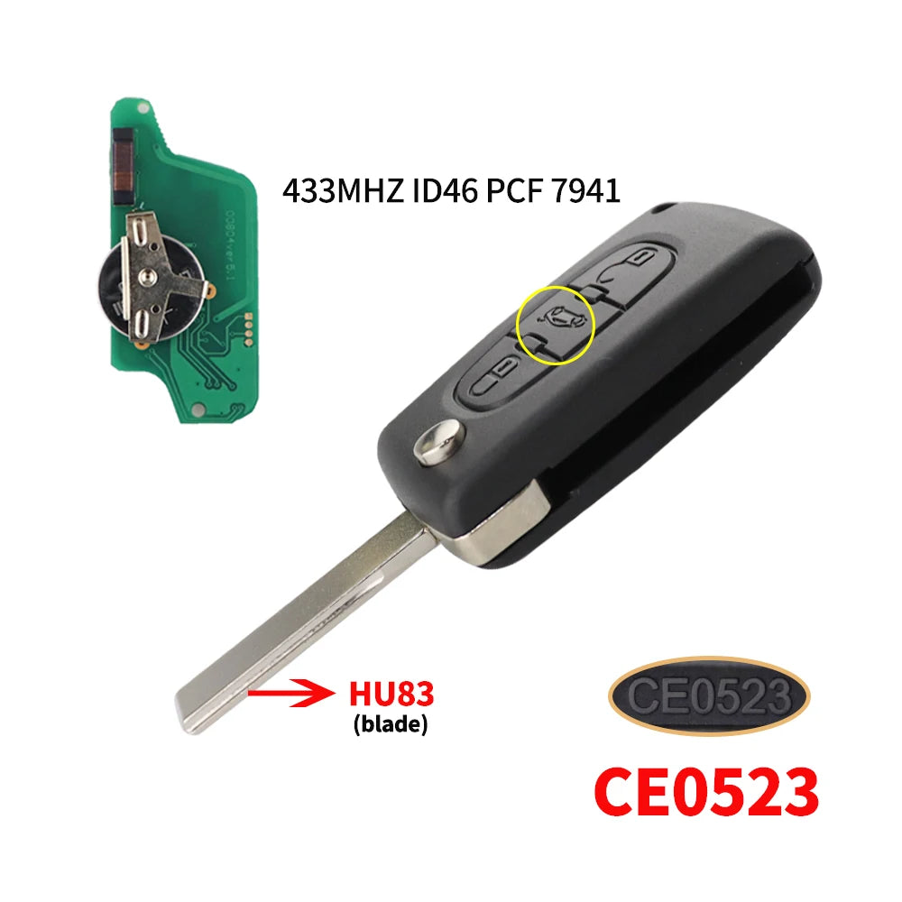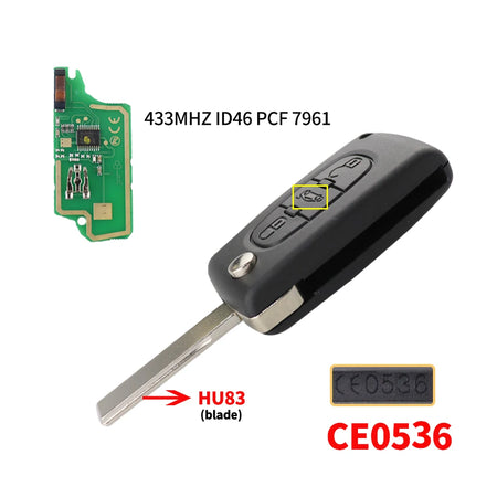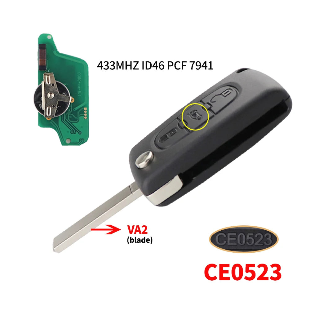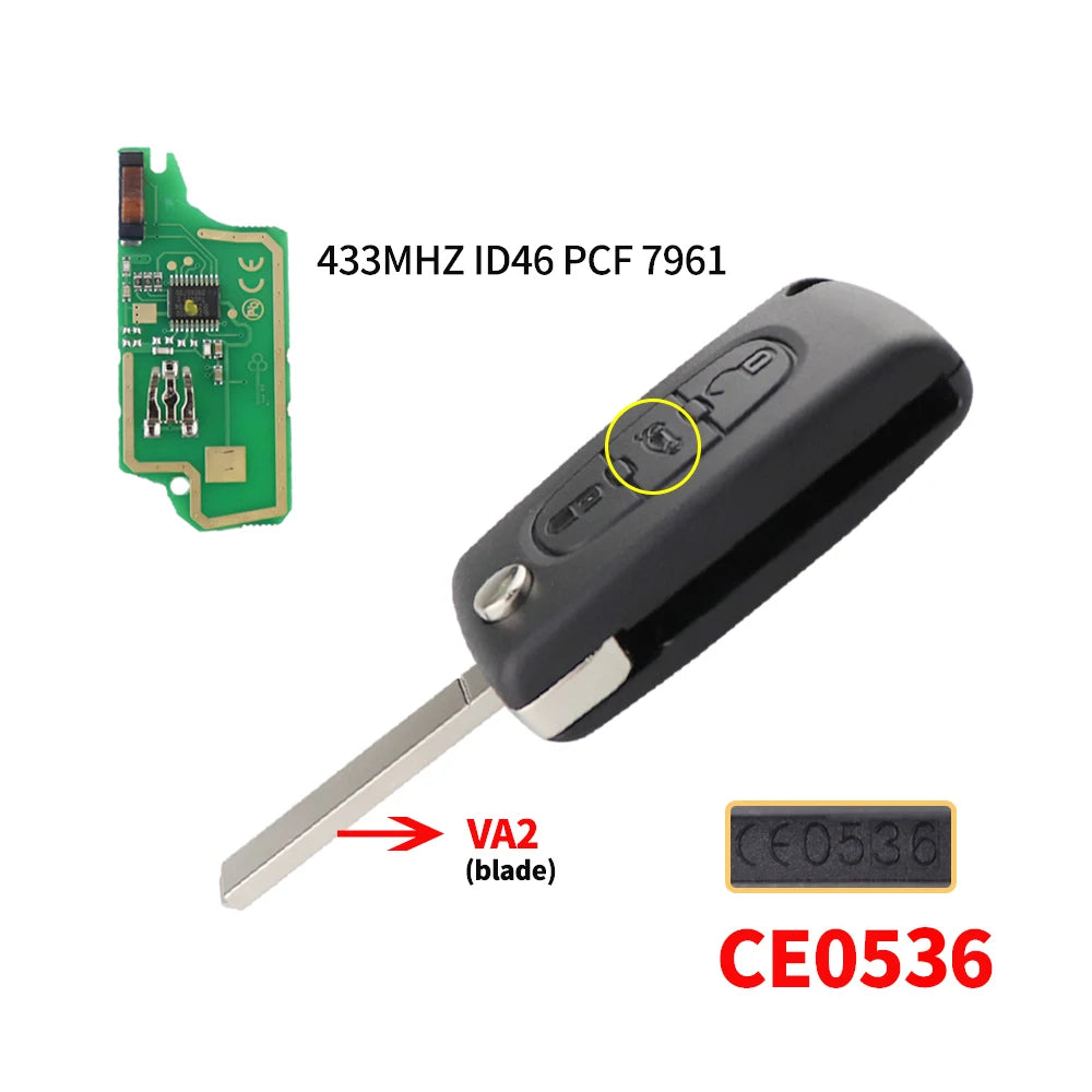 Yhteensopivuuden kohokohtia ovat 3-nappinen toiminta, 433 MHz taajuus ja ID46-transponderi, terä- ja vaihto-ominaisuudet (VA2/HU83 terä; VA2/HU82 vaihto). Tämä avain on tarkoitettu erityisiin Peugeot- ja Citroën-malleihin, mutta se on suunniteltu toimimaan useissa ajoneuvoissa, jotka käyttävät ID46/PCF7941/PCF7961 siruperhettä.