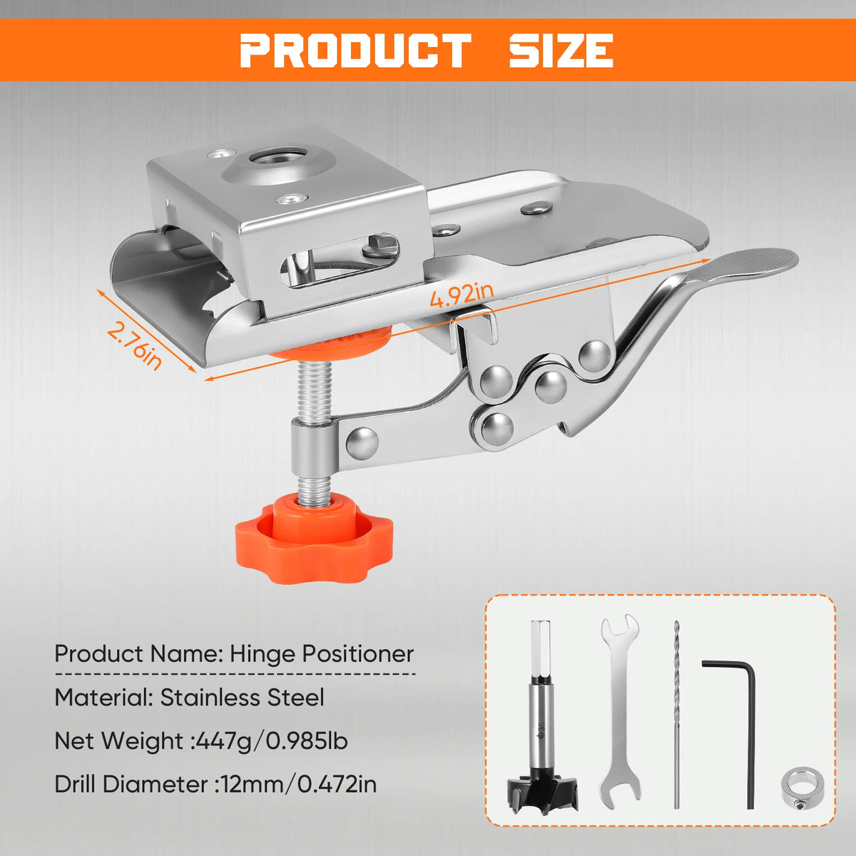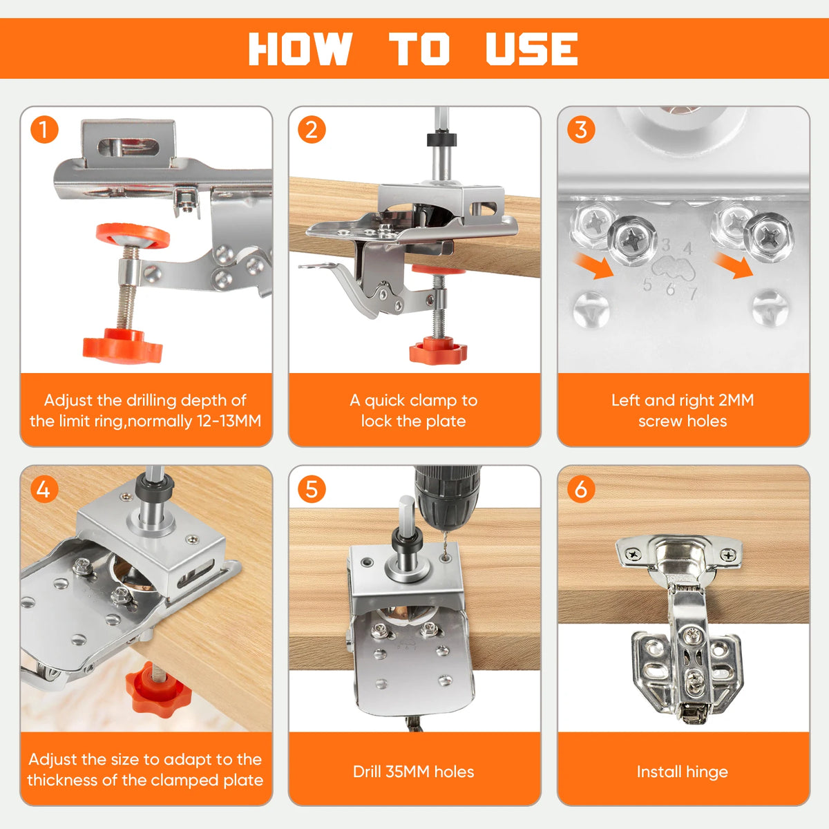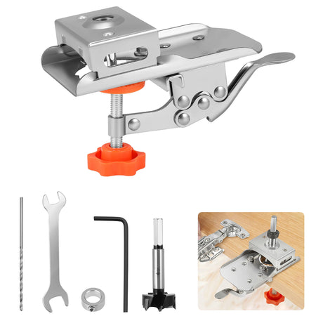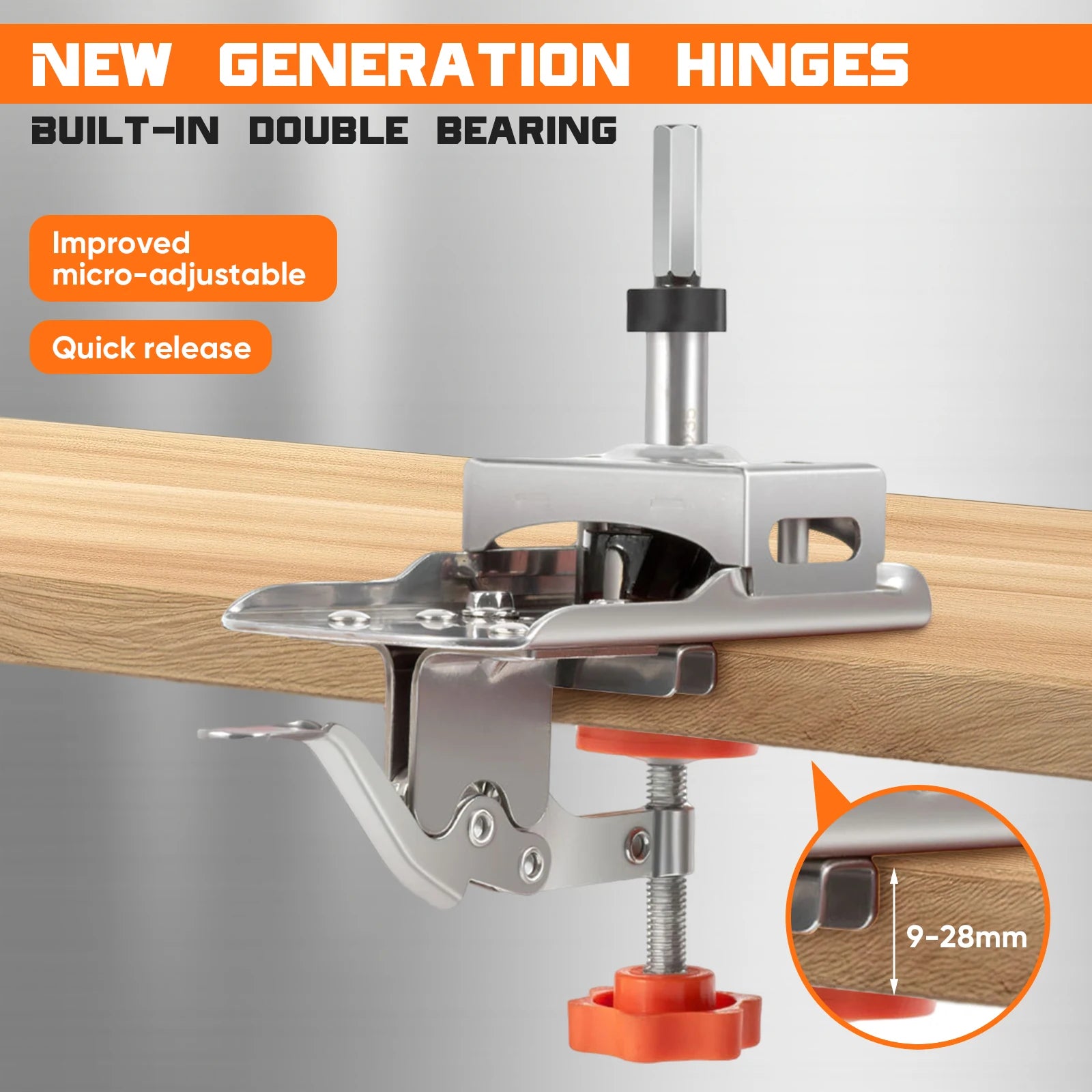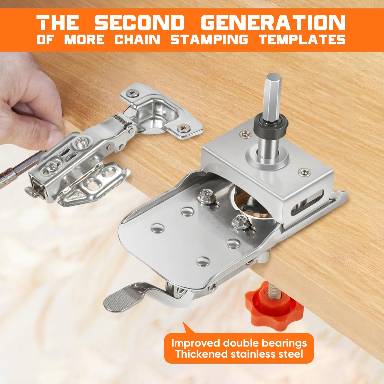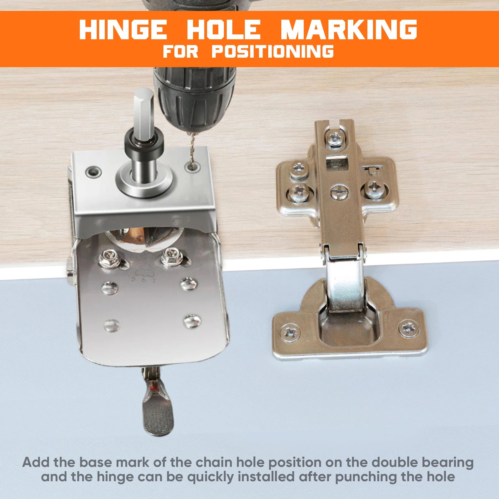 Helppokäyttöinen ja luotettavaksi suunniteltu, tämä tarkkuusporausmalli tukee 35 mm:n potin halkaisijaa ja tehostaa saranareikien poraamista. Säädettävä asennuslevy antaa sinun hallita reunan etäisyyttä ja ylälaakerin syvyyttä. Löysää ruuvi säätääksesi reunan väliä, kun taas sisäänrakennettu kaksoisklipsi pitää työkappaleen tukevasti paikoillaan, estäen liukumisen ja varmistaen tasaisen poraus tarkkuuden.