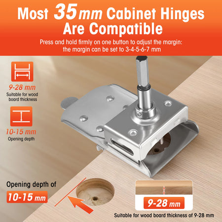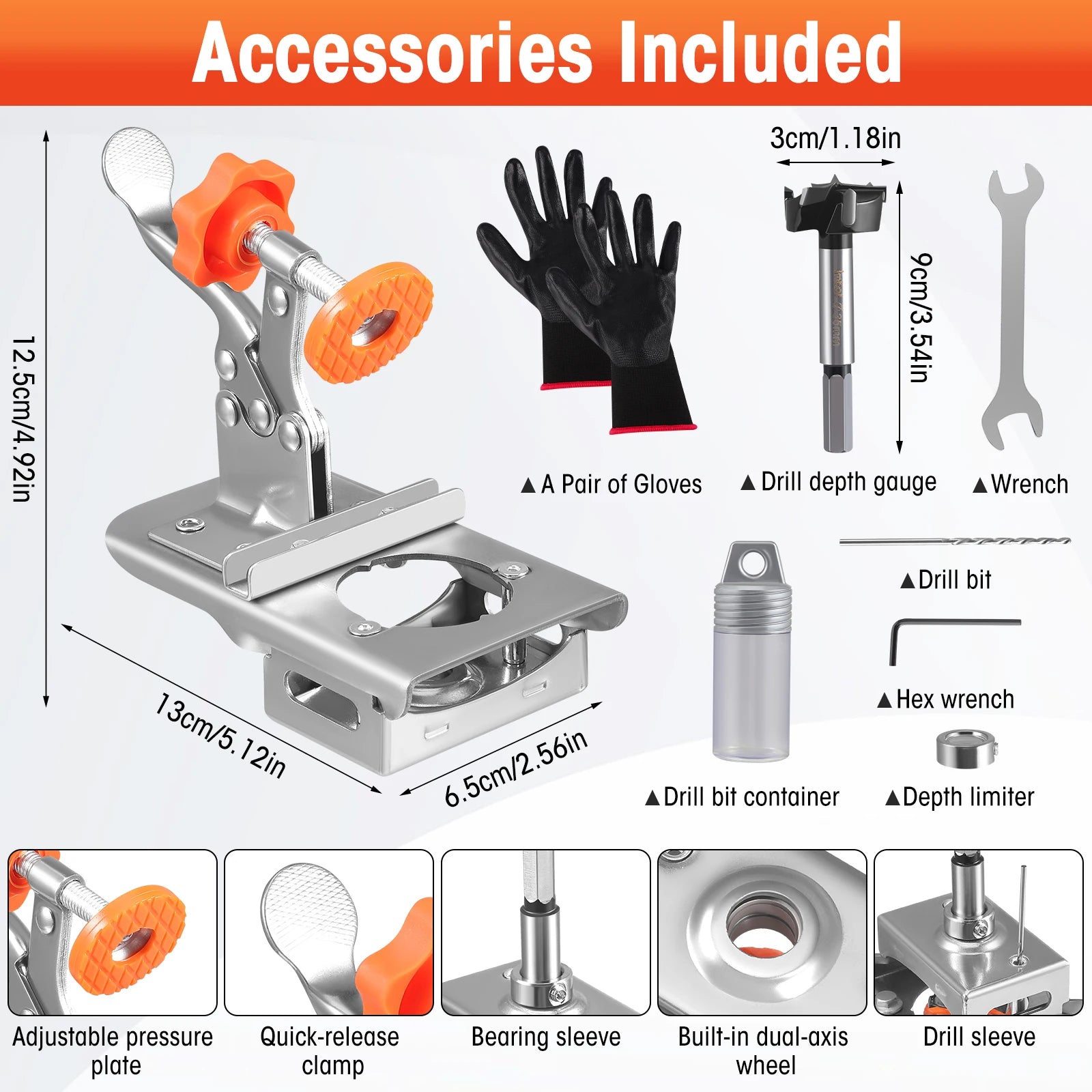 Tervetuloa 35mm Sarana Porauksen Mallin Nopeaan Oppaaseen Puusepäntyöhön — tarkka, kestävä työkalu, joka on suunniteltu helpottamaan saranan asennusta kaapin oville ja huonekaluille. Suunniteltu käsittelemään standardeja 35mm saranareikiä, tämä kompakti sarja varmistaa nopean, tarkan porauksen toistettavilla tuloksilla. Valmistettu ruostumattomasta teräksestä pitkäikäisyyden takaamiseksi, siinä on säädettävä asennuslevy, kaksoisklemmari ja 35mm reiän avauslaite rajoitusrenkaalla, joka lukitsee kohdistuksen ja estää siirtymisen. Täydellinen tee-se-itse-projekteihin ja ammattilaiskaapistoon, tämä opas tuottaa puhtaita, johdonmukaisia tuloksia joka kerta.