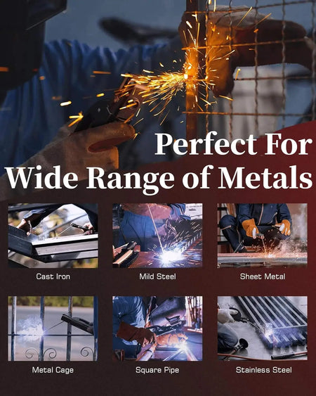 - Projektivalmis ohjeistus: Paras kaaren käynnistys 3/32-tuumaisilla elektrodeilla; sopii 2–5 mm materiaalipaksuudelle ja metalleille kuten hiiliteräs ja ruostumaton teräs. Älä hitsaa alumiinia. Parhaiden tulosten saavuttamiseksi noudata mukana tulevaa käyttöopasta ja käytä suositeltuja elektrodikokoja (E6010, E6011, E6013, E7018).