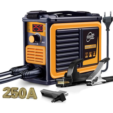 Tutustu 3KW MMA 250 Kannettava Inverteri Kaarihitsauskone 250A Säädettävä — kompakti, tehokas hitsauskumppani, joka on suunniteltu aloittelijoille, tee-se-itse-harrastajille ja ammattilaisille, jotka tarvitsevat luotettavaa suorituskykyä liikkeellä. Tämä EU-pistoke 220V hitsauskone tuottaa 3KW syöttötehoa 50/60 Hz toiminnalla, tarjoten tarkan 20–250A virran säädön monipuoliseen metallityöhön. Sen nopea kaaren käynnistys, kestävä rakenne ja sisäänrakennetut turvallisuusominaisuudet auttavat sinua tackling projekteja kotiaidoista pöytiin, tuoleihin ja hyllyihin luottavaisin mielin. Pienen jalanjäljen (225 × 110 × 175 mm) ja kevyen painon (noin 1.7 kg) ansiosta se toimitetaan valmiina säilytettäväksi tai kannettavaksi, mukaan lukien käytännöllinen olkahihnasuunnittelu helppoa kuljetusta varten ulkona työpaikoille. Se tukee E6010/6011/6013/7018 elektrodeja (2.5 mm halkaisija) ja on sopiva hiiliteräkselle, ruostumattomalle teräkselle ja muille metalleille (ei alumiinille).
