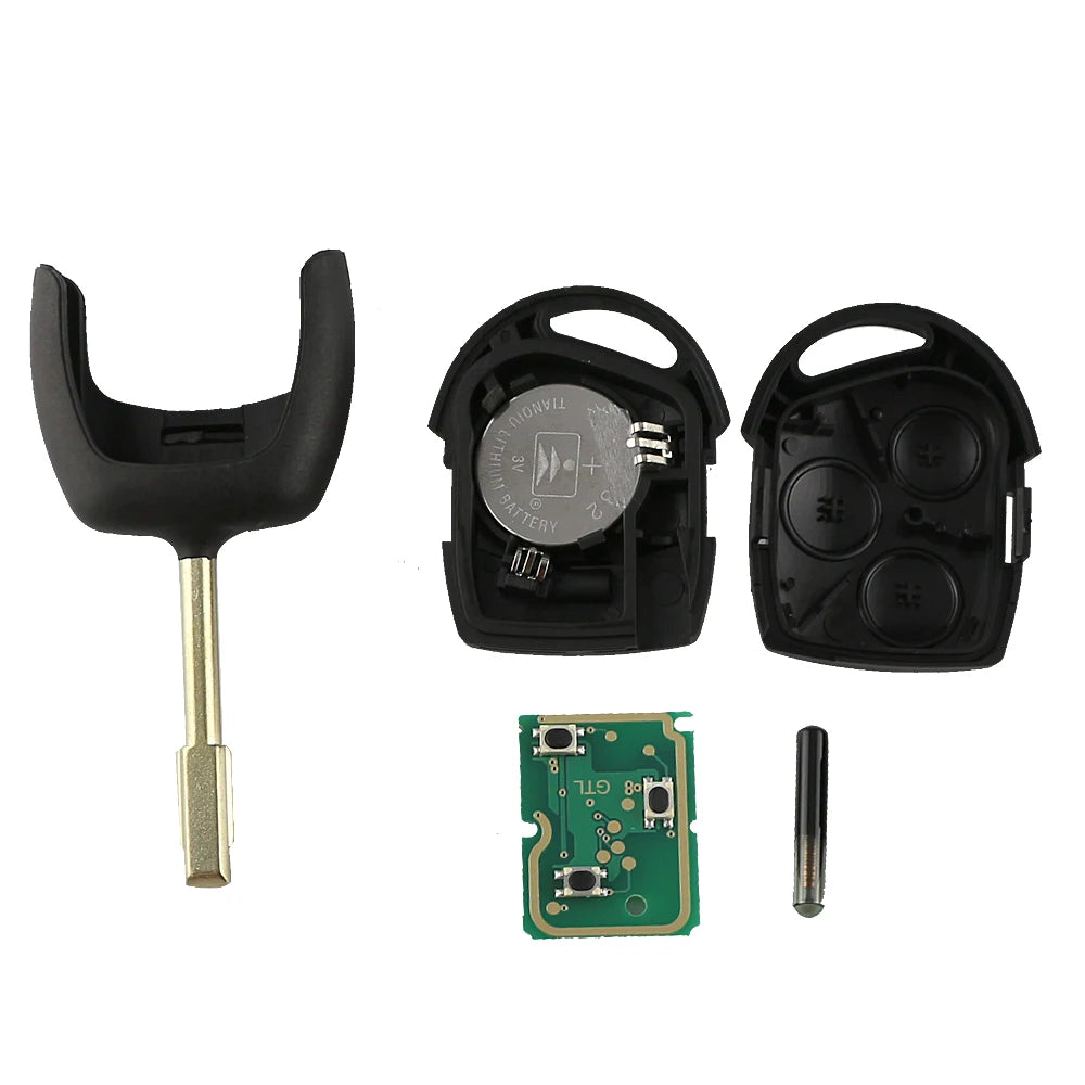 Yhteensopivuus lyhyesti: tämä avain kattaa Ford KA (2001–2008), Mondeo (2001–2007), Focus (1998–2004) ja MK2/MK5/MK7 sukupolvet. Se sopii myös Fusionille, Fiestalle, Galaxylle, C-Maxille, S-Maxille ja 3 Transit -variantille, jotka on lueteltu Fordin avainkonfiguraatioissa. Jos alkuperäisessä avaimessasi on samat painikkeet, taajuus ja sirutyyppi, tämä varaosa on vahva vaihtoehto.