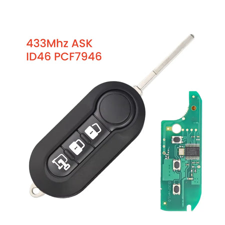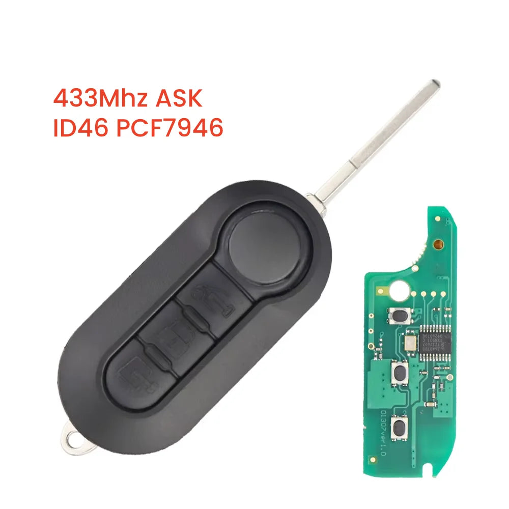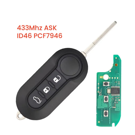 Esittelyssä Fiat 500 Etäavain, jossa on 433MHz taajuus ja ID46 PCF7946 transponderipiiri—luotettava, korkealaatuinen vara-avain, jota tarvitset Fiat-malleille, kuten 500, Panda, Punto, MPV, Bravo, 500L, Ducato, Doblo ja muihin. Kestävästä muovista ja metallista valmistettu avain on suunniteltu kestämään päivittäistä käyttöä samalla kun se tarjoaa luotettavaa suorituskykyä.