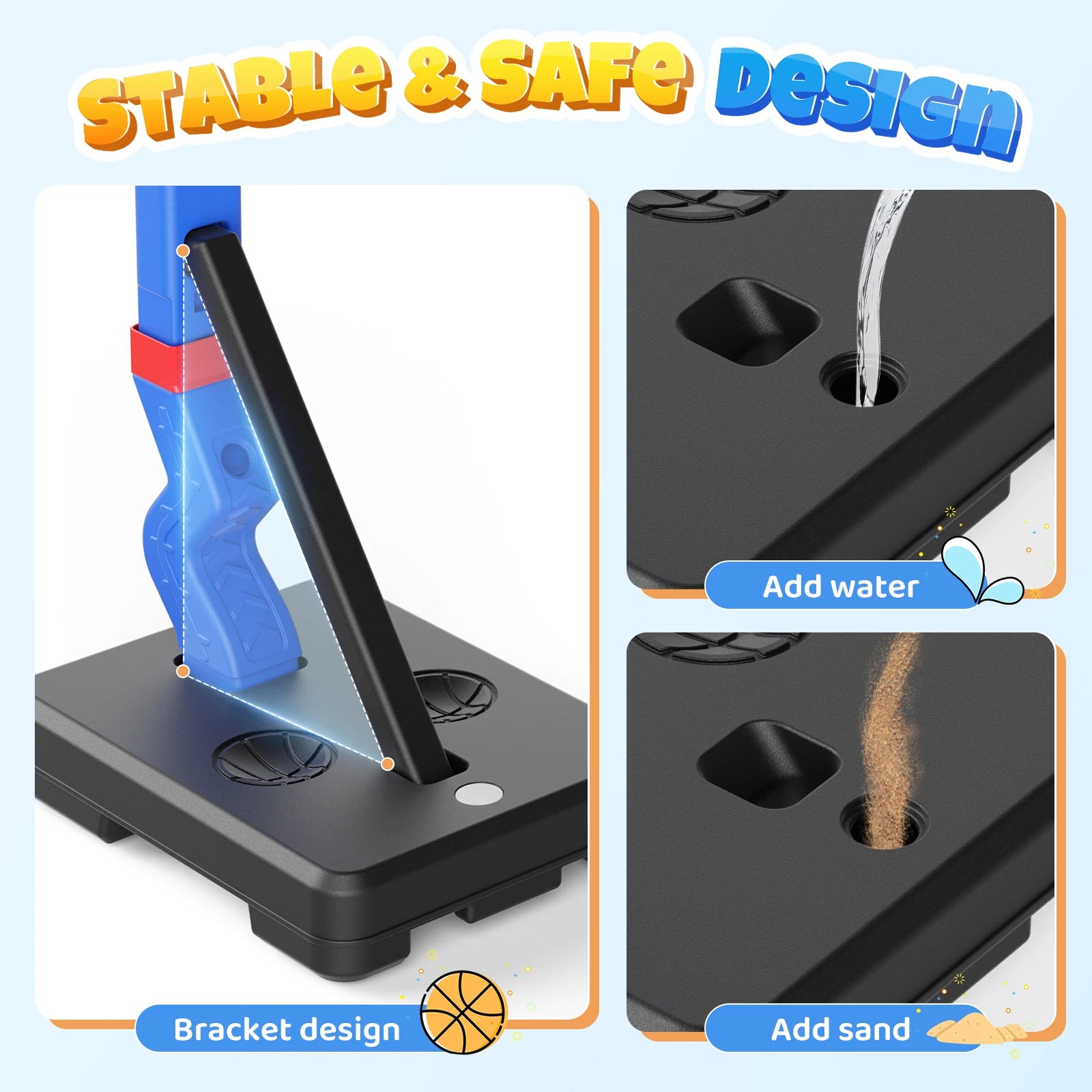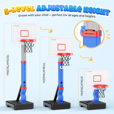Anna lasten kasvaa leikin kautta säädettävän lasten koripallokorin avulla, joka on varustettu jalustalla Jugacoolilta. Tämä tukeva, muovista valmistettu kori on suunniteltu mukautumaan lapsesi oppimiseen ja kehittymiseen, muuttaen jokaisen heiton itseluottamusta lisääväksi hetkeksi. 5-tasoinen korkeuden säätö, joka vaihtelee 26.61":stä 52.56":een (67.6 cm–133.5 cm), kori kasvaa lapsesi mukana, mikä tekee siitä pitkäikäisen lisän kotiisi tai pihaasi.
