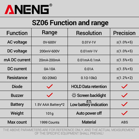 - Mallinumero: ANENG SZ06