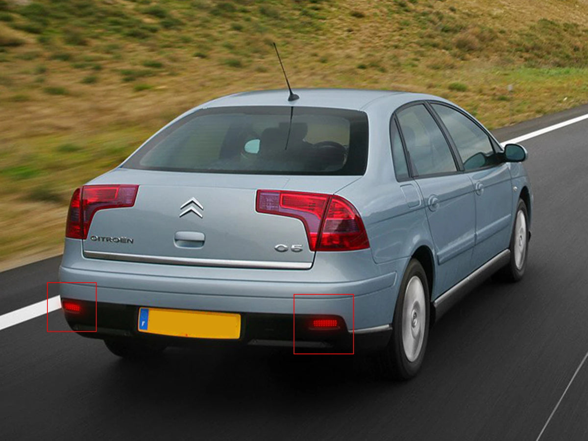 Päivitä Citroen C1, C5, Peugeot 107 ja yhteensopivat mallit tällä parilla LED-puskureiden heijastinvaloja, joissa on savulasi. Suunniteltu korvaamaan vakiotakapuskurin heijastin samalla kun se lisää kirkkaan LED-peruutus-, jarru- ja suuntavilkkutoiminnallisuuden, nämä lamput yhdistävät turvallisuuden tyylikkääseen, nykyaikaiseen ilmeeseen. Jokaisessa lampussa on 30 korkeatehoista 3528/1210 SMD-LEDiä, jotka tuottavat kirkasta punaista valoa 12V DC:ssä. Savunmusta linssi antaa tyylikkään ilmeen samalla kun se vähentää häikäisyä ohikulkijoille. Suunniteltu sopimaan useisiin Citroën/Peugeot/Fiat-malleihin, nämä ovat OEM-tyylisiä lisäosia, jotka parantavat näkyvyyttä ilman invasiivisia muutoksia. Ne ovat vedenkestäviä kaikissa sääolosuhteissa ja asennetaan liittämällä johdot värin mukaan: musta/sininen jarruvalon negatiiviseen, valkoinen signaali/peruutusvalon positiiviseen ja punainen jarruvalon positiiviseen. OEM-osanumeroita: 6340E6, 6340E7, 9659830680. Parhaiden tulosten saavuttamiseksi tarkista oikea sopivuus ennen ostoa. Sopii: Takapuskurin heijastinvalolamppu.