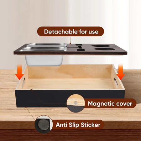 - Vinkki: irrota telineen kansi nopeaa puhdistusta varten; ruostumattomasta teräksestä valmistetut kulhot ovat konepestäviä helppoa huoltoa varten.