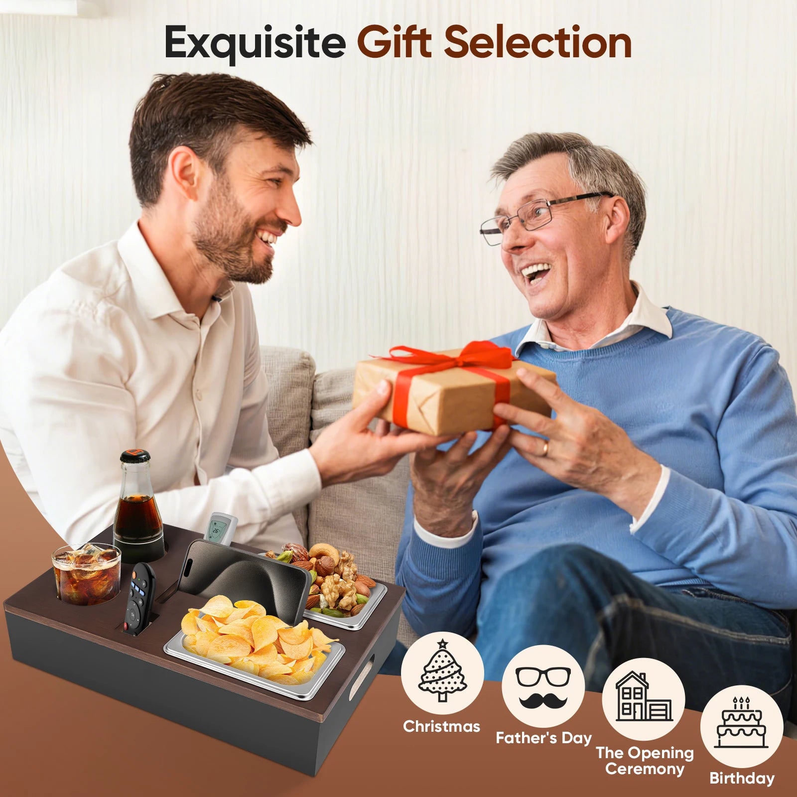 - Vaihda juomien ja välipalojen välillä ilman, että sinun tarvitsee nousta sohvalta—integroitu puhelinteline pitää laitteesi helposti saatavilla ja kätesi vapaina.