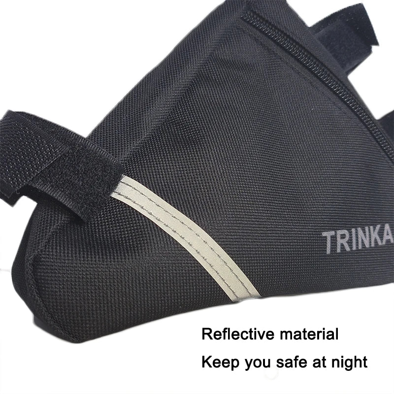 Suunniteltu kestämään kosteita olosuhteita, kassi on valmistettu kestävästä nailonista, jossa on vedenpitävät ominaisuudet, jotka auttavat pitämään sisällön kuivana. Se käyttää tarranauha-järjestelmää nopeaa kiinnittämistä ja irrottamista varten, ja heijastinauhat molemmilla puolilla parantavat näkyvyyttä yöajossa. Oikeakulmainen kolmion muoto sopii laajalle valikoimalle pyöriä, ja kokoa voidaan mukauttaa sen mukaan, kuinka paljon sinun tarvitsee kantaa.