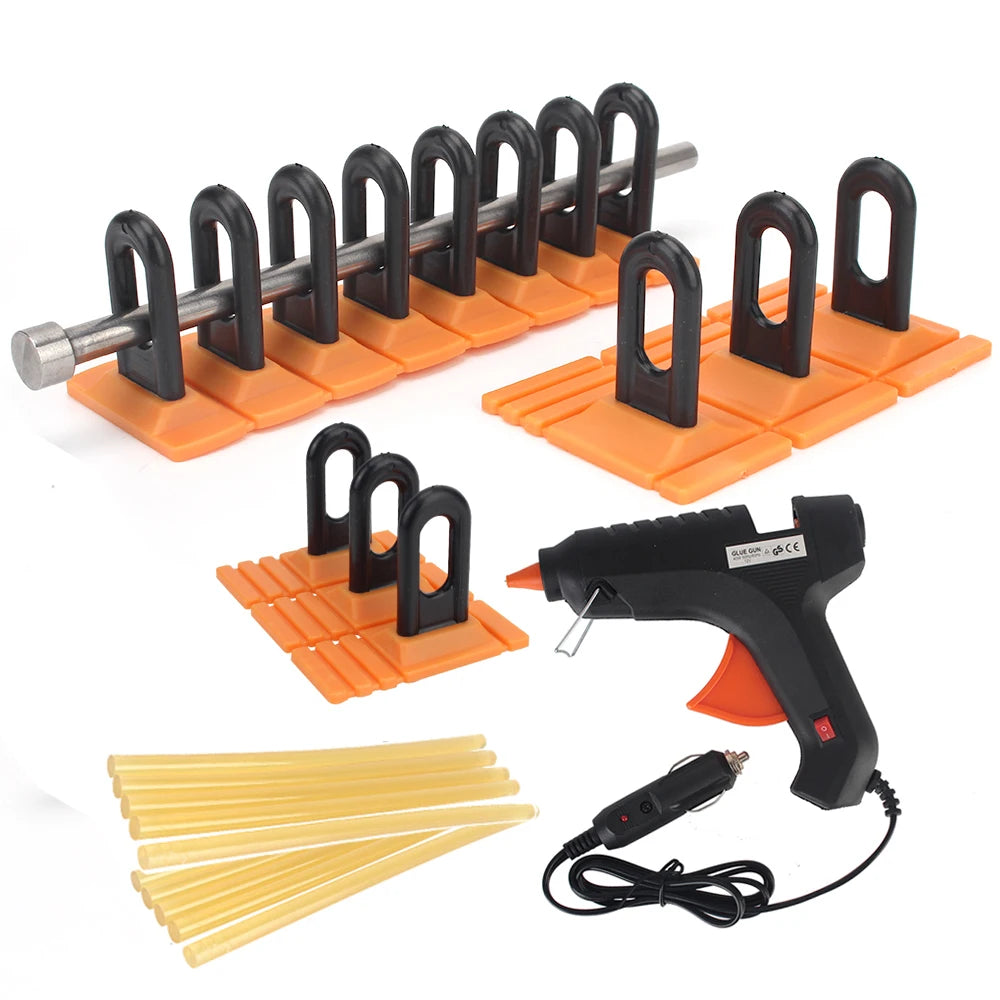Yleinen auton kolhujen vetotyökalu 12V 40W liimapistoolilla on monipuolinen, maaliton kolhujen korjausratkaisu, joka on suunniteltu palauttamaan metallipintoja ilman maalausta. Se on rakennettu käsittelemään kolhuja autojen ja muiden tasojen metallipintojen, kuten jääkaappien ja pesukoneiden, päällä—setti tarjoaa käytännöllisen, aikaa säästävän lähestymistavan yleisiin kolhuihin ja rakeiden aiheuttamiin vaurioihin. Kestävästä metallista ja muovista valmistetut keltaiset vetonauhat ja kolhujen nostin on suunniteltu kestämään toistuvaa käyttöä samalla kun ne tarjoavat hallittua vetovoimaa. Sen yleinen muotoilu tukee laajaa valikoimaa merkkejä ja malleja, mukaan lukien Toyota, Honda, Nissan ja muut, mikä tekee siitä arvokkaan lisän mihin tahansa kotitalliin tai ammattimaiseen korjaamoon.