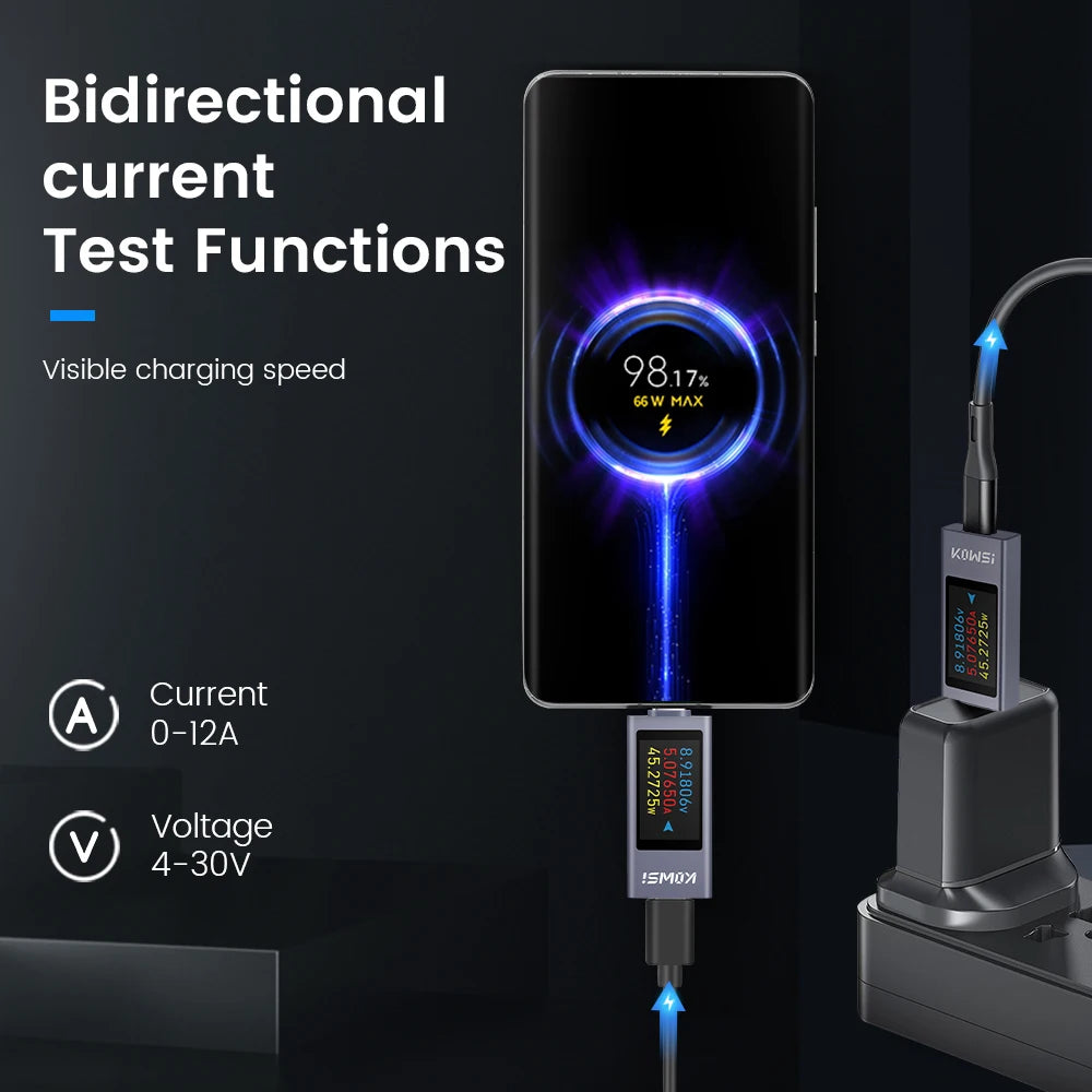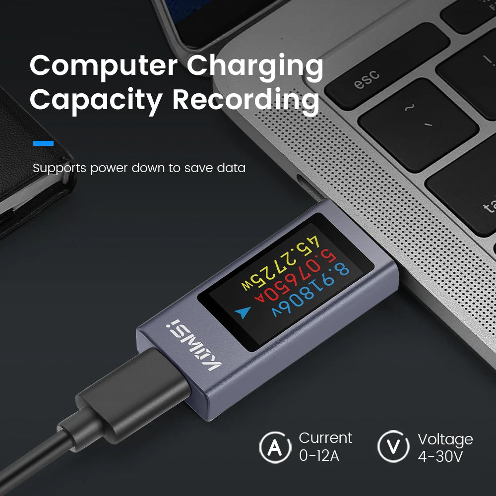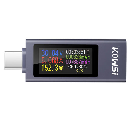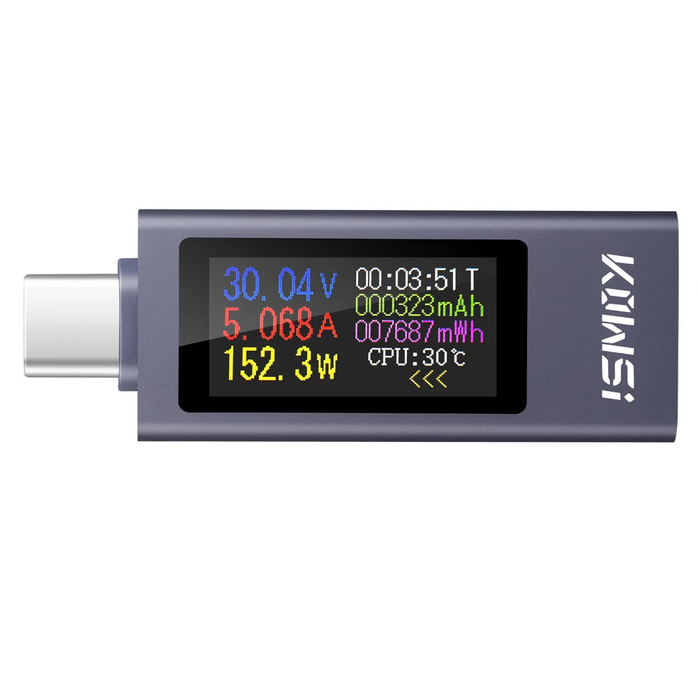 Type-C USB Tehomittari Voltimetrillä ja Amperimetrillä on kompakti, tarkka työkalu, joka on suunniteltu seuraamaan tasavirta-latausta reaaliajassa. Se tukee 4–30V ja jopa 12A, ja se tallentaa jännitteen, virran, tehon, energian, kapasiteetin ja ajastuksen kaikki yhdellä selkeällä näytöllä. Täydellinen USB‑C PD-laturien, power bankien ja muiden latauslaitteiden testaamiseen, se auttaa sinua tunnistamaan latauskäyttäytymisen, optimoimaan tehokkuuden ja havaitsemaan ongelmat nopeasti.