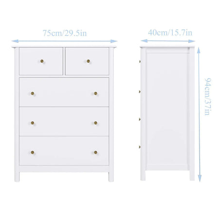 Valkoinen 5 laatikon lipasto moderni minimalistinen makuuhuoneen vaatekaappi