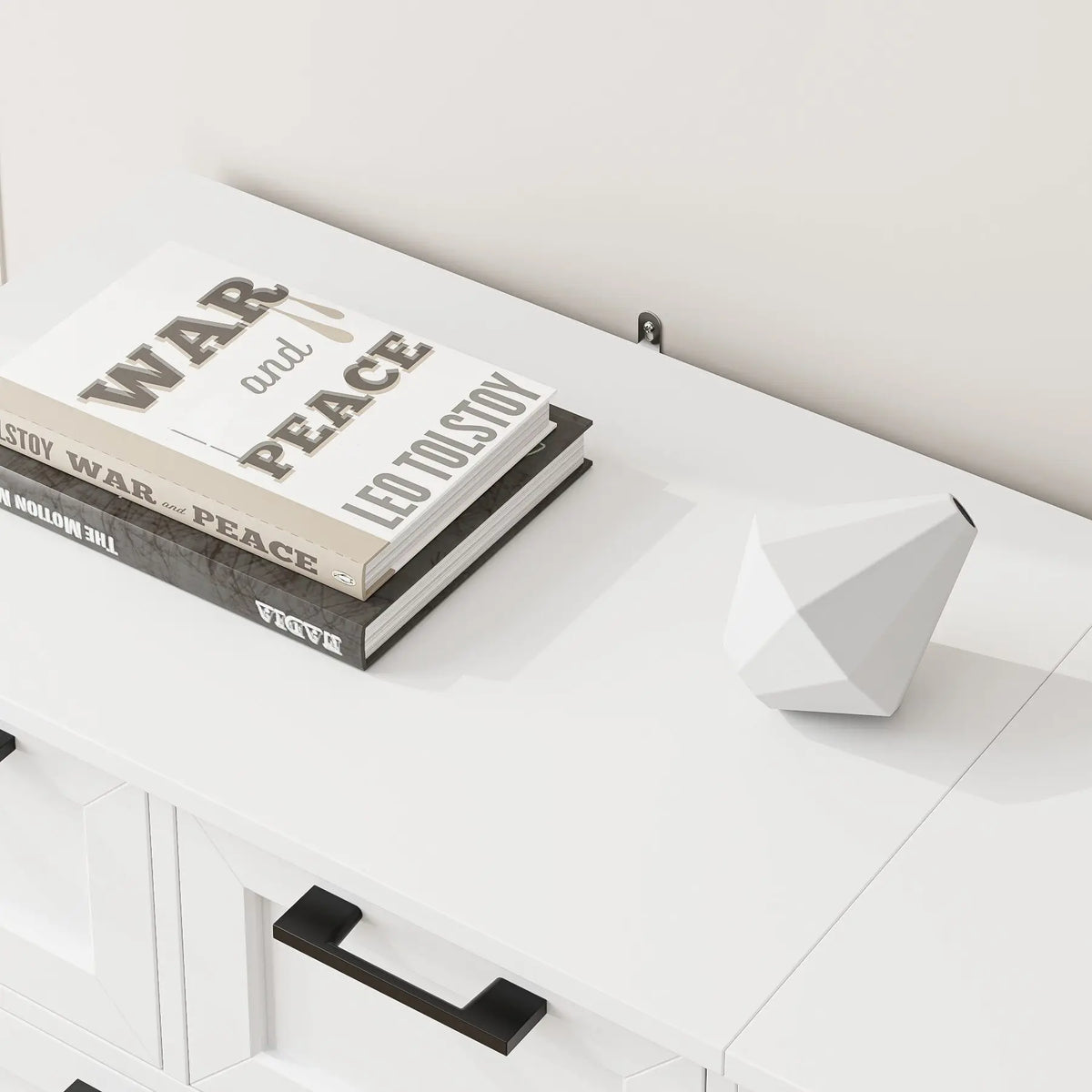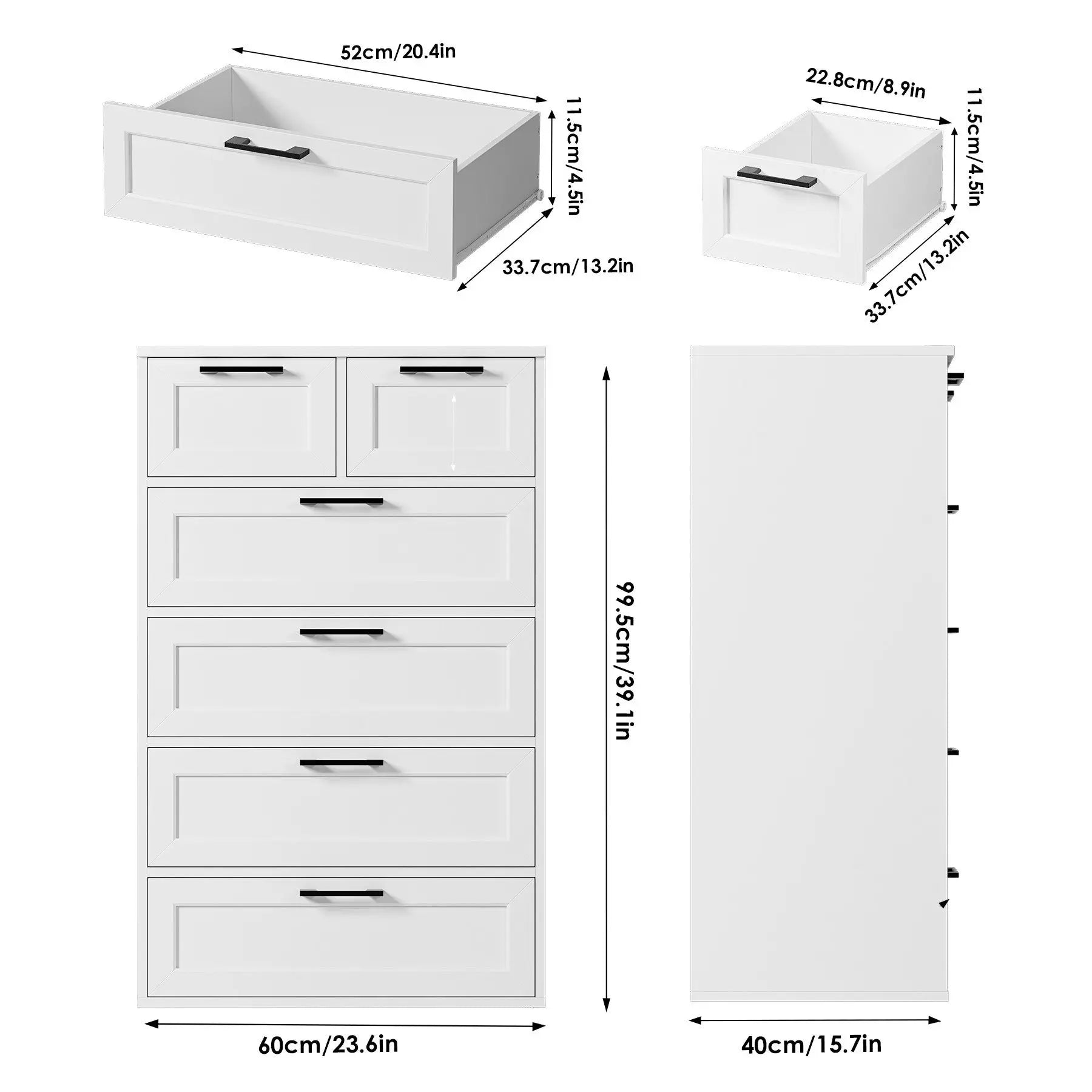 Löydä tyylikäs ja käytännöllinen säilytysratkaisu Valkoisella Lipastolla, jossa on kuusi laatikkoa. Tämä kapea vaatekaappi on suunniteltu maksimoimaan tila pienissä makuuhuoneissa tai eteisissä, samalla kun se tarjoaa runsaasti järjestelytilaa vaatteille, asiakirjoille ja päivittäisille tarvikkeille. Neljä suurta laatikkoa ja kaksi pienempää laatikkoa tarjoavat kategorisoitua säilytystä, jotta sekasorto pysyy piilossa ja elintilat siisteinä.