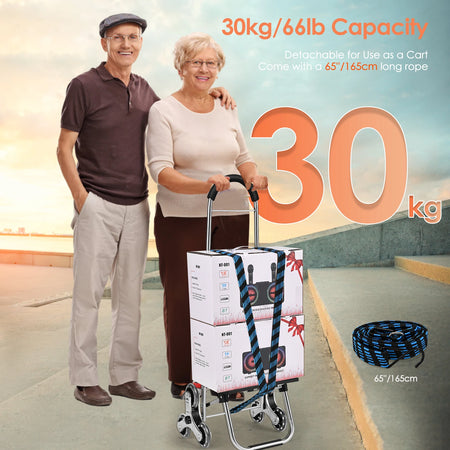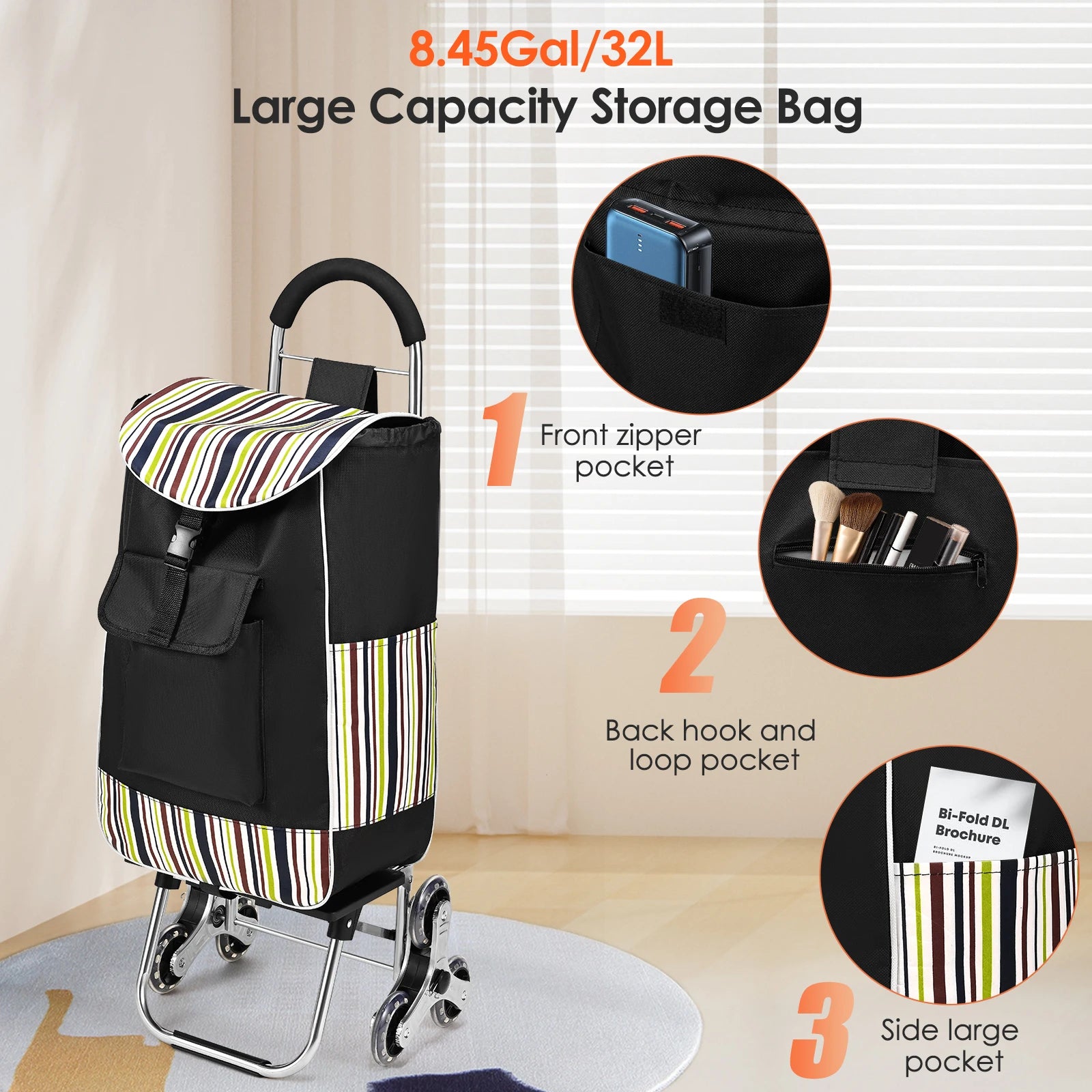 Huom: Kun menet alas portaita, pidä ostoskärry edessäsi; kun menet ylös portaita, pidä kärry takanasi. Älä ylitä ilmoitettua kuormarajaa 30 kg / 66 lb, ja varmista, että laukku on tiiviisti suljettu kuljetuksen aikana.