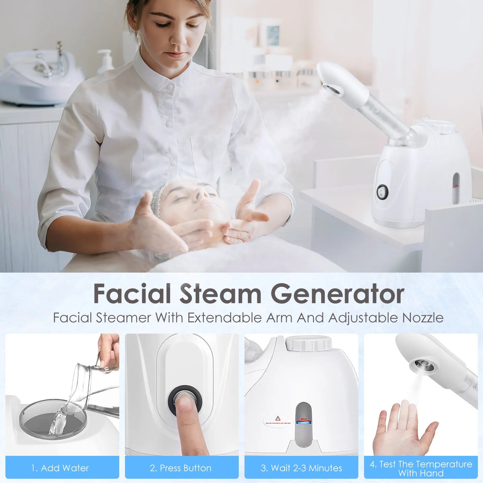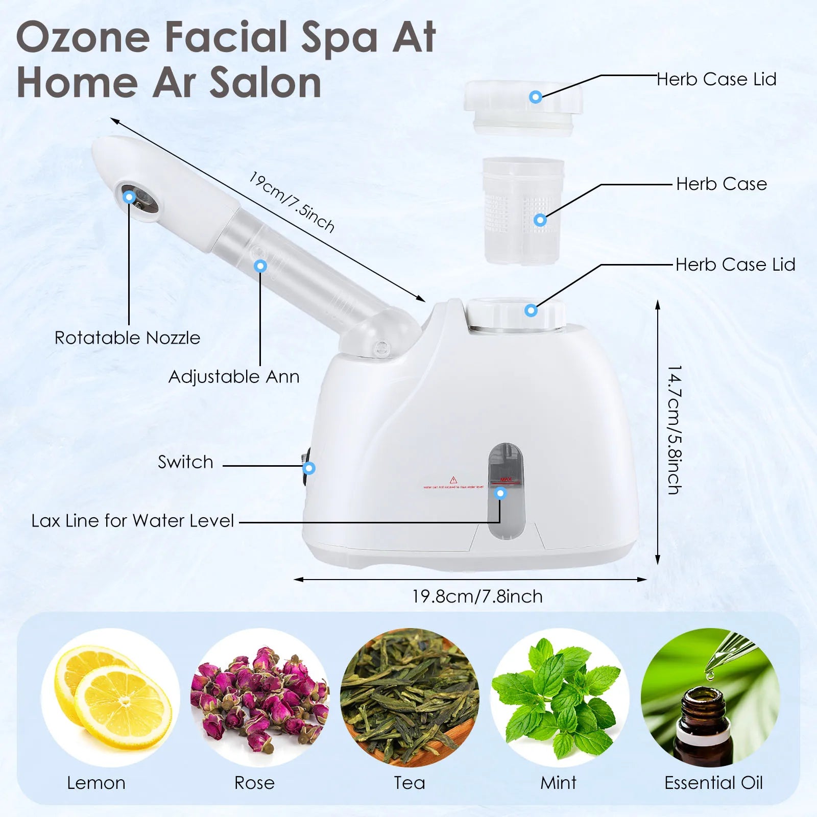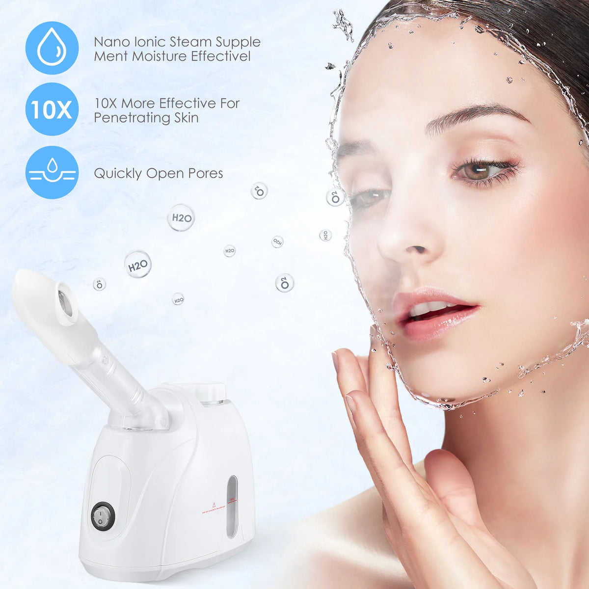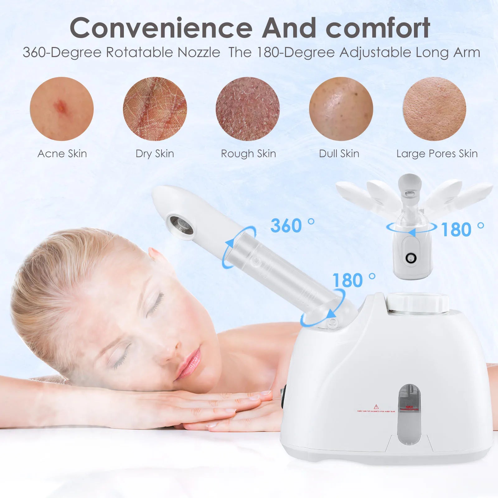 - Syväpuhdistus ja huokosten hoito: lämmin, haihtunut sumu avaa huokosia ja auttaa poistamaan epäpuhtauksia tasaisemman ihon saavuttamiseksi.