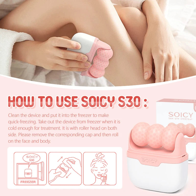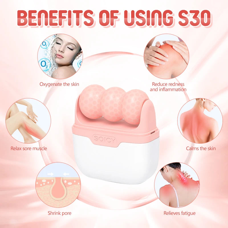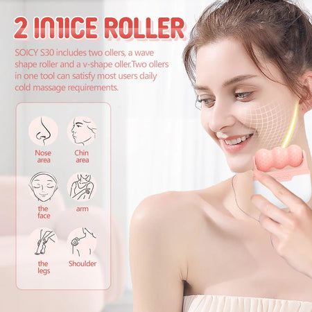 Raikasta ja kohota ihosi Ice Cold Facial Massager Roller Anti Wrinkle Lifting, malli S30. Tämä dermal-jäärolleri yhdistää edistyksellisen kylmähoidon käytännölliseen muotoiluun tukemaan ihon nuorentamista, lievittämään kasvojen jännitystä ja pehmentämään ärsytystä. Ihanteellinen kasvohoitoon, sitä voidaan käyttää myös käsille ja jaloille rauhoittavan, säihkeän hehkun edistämiseksi.