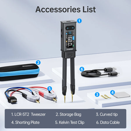LCR-ST2 on viimeisimmän sukupolven pinsettityylinen LCR-mittari, joka on suunniteltu nopeaan ja tarkkaan testaukseen pienissä komponenteissa ahtaissa tiloissa. Tämä monitoiminen, kannettava testeri tunnistaa vastukset, kondensaattorit, induktorit, diodit ja mittaa jännitteen jopa 30 V yhdellä pyyhkäisyllä. Sen älykäs muotoilu yhdistää 1,47 tuuman HD-värinäytön, magneettikiinnityksen ja sisäänrakennetun 300 mAh akun liikkuvaan työhön. Viiden testitaajuuden (100 Hz, 120 Hz, 1 kHz, 10 kHz ja 100 kHz) ja 100 Hz–100 kHz kattavan pyyhkäisytoiminnon avulla voit luonnehtia komponentteja nopeasti ja luottavaisesti. LCR-ST2:n automaattinen tunnistus (R/C/L) ja kaksitila näyttö helpottavat analysointia, kun taas sen kevyt rakenne (noin 60,8 g) tekee siitä ihanteellisen kenttäinsinööreille ja laboratorio käyttöön. Kaikki InterCypruksen EU-maihin myymät elektroniset ja mekaaniset laitteet, laitteet ja koneet ovat CE-sertifioituja ja niillä on kahden vuoden takuu.