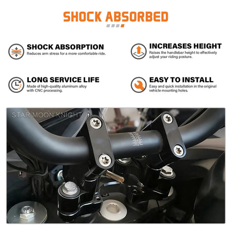 Päivitä KTM:si Star Moon Knight CNC-koneistetulla alumiinisella ohjaustangon nostokitillä, joka on suunniteltu sopimaan 390, 690, 790, 1090, 1190 ja 1290 Adventure -malleihin sekä R, S ja T -variantteihin. Tämä tarkkuuskoneistettu alumiininen ohjaustukivarsi nostaa ja asettaa ohjaustangon mukavampaan ajoasentoon, parantaa vipuvoimaa ja hallintaa vaihtelevilla maastoilla. Valmistettu korkealuokkaisesta CNC-koneistetusta alumiiniseoksesta ja viimeistelty kestävällä anodisoidulla pinnoitteella, se yhdistää kovan suorituskyvyn tyylikkääseen ulkonäköön joko hopeisena tai mustana. Helppo asentaa ilman ohjeita, ja suunniteltu niin, että Bowden-kaapeleiden pidennystä ei tarvita, jotta voit palata nopeasti tielle. Alkuperä: Manner-Kiina. Kunto: 100% täysin uusi.