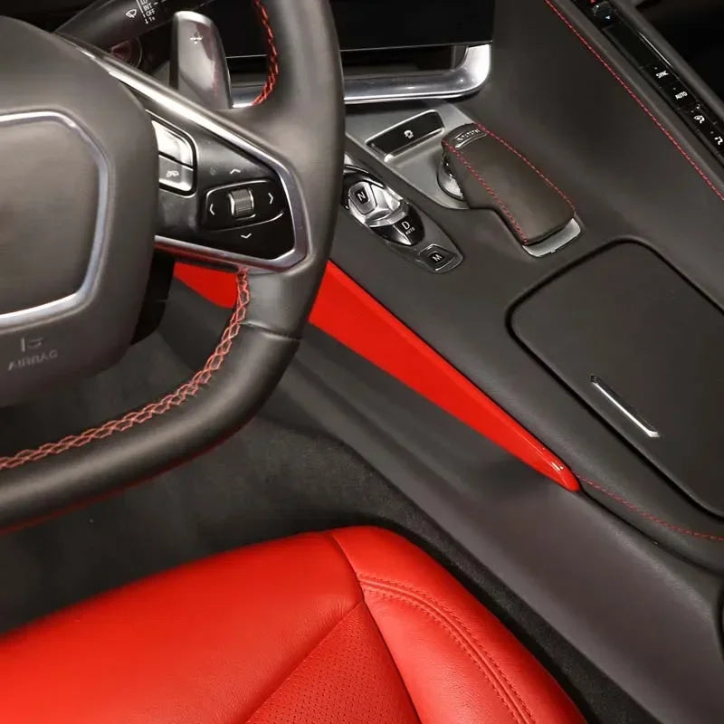 Punainen ABS-keskikonsolin polvilevy Chevrolet Corvette C8:lle