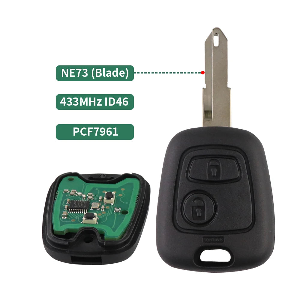 Etäavaimen kaukosäätö Citroen C1 2-nappinen, leikkaamaton terä ID46 PCF7961 433MHz valmiina ohjelmoitavaksi