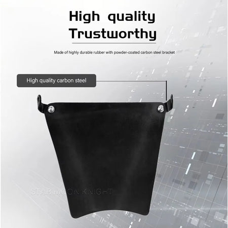 - Kestävä kumimateriaali yhdessä tukevan hiiliteräksisen kannattimen kanssa tarjoaa kestävää suojaa kosteissa, mudassa ja jokapäiväisissä tieolosuhteissa.