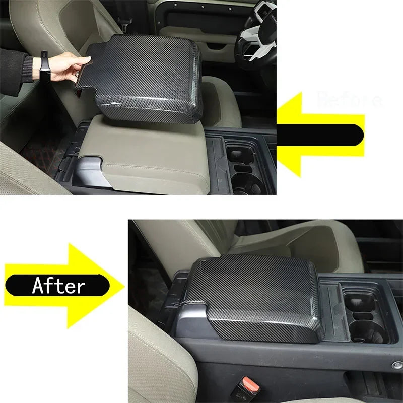 Päivitä Land Rover Defenderin sisustus Land Rover Defender 90 110 2020 Hiilikuitu käsinojapeitteellä. Valmistettu korkealaatuisesta aidosta hiilikuidusta, tämä suojaava keskikonsolin käsinojapeite lisää tyylikkään, urheilullisen ilmeen samalla kun se suojaa alkuperäistä pintaa naarmuilta ja päivittäiseltä kulumiselta. Suunniteltu Defender 90 ja 110 malleille vuodesta 2020 eteenpäin, se istuu tiukasti puhtaalla, saumattomalla viimeistelyllä.