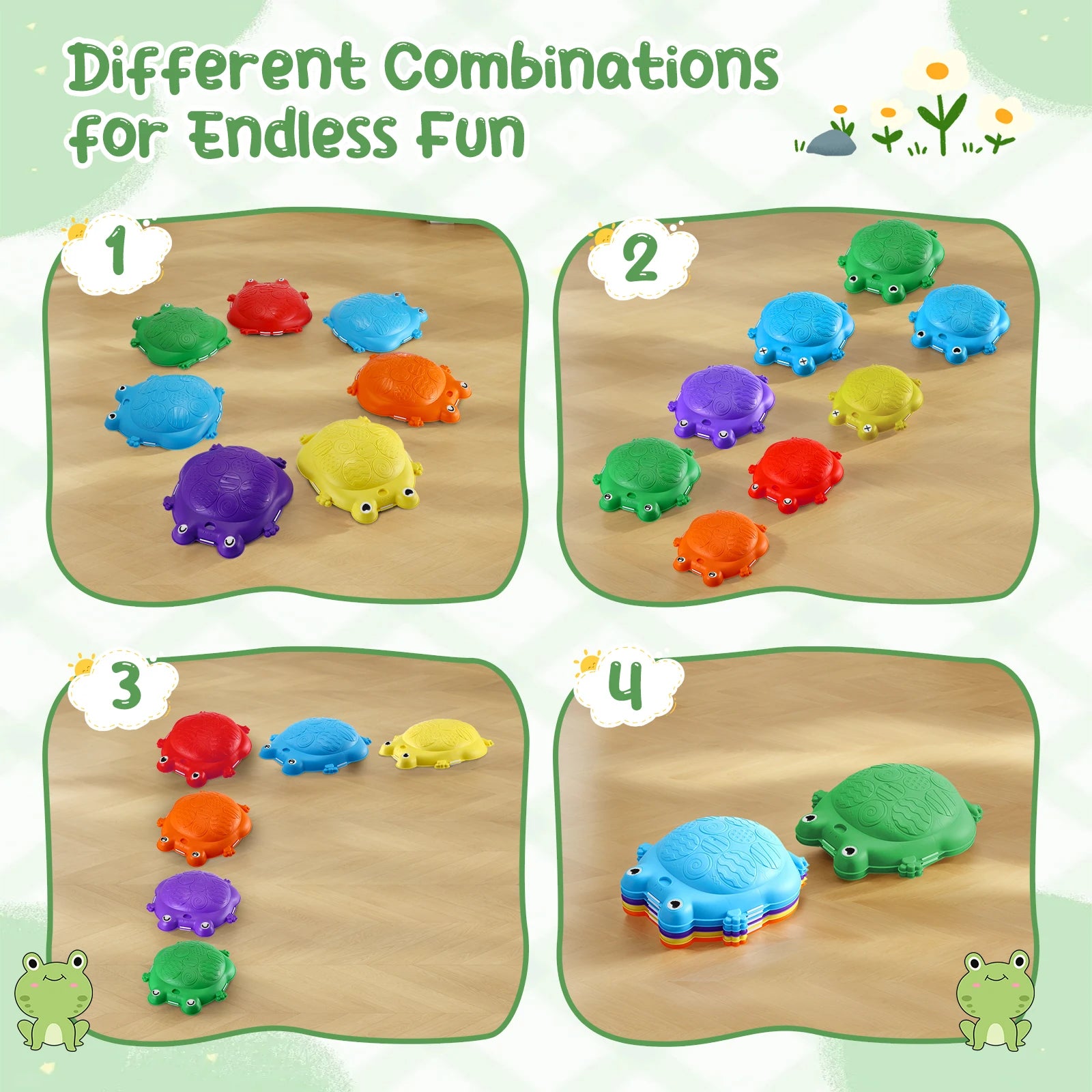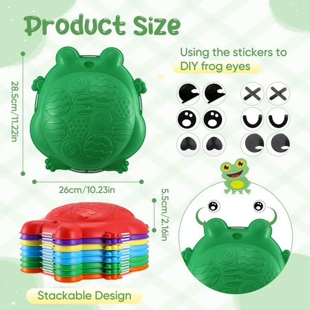 Vahvista aktiivista leikkiä Frog Stepping Stones 8-osaisella tasapainosarjalla. Suunniteltu lasten mielikuvitukselle ja itseluottamukselle, tämä värikäs kokoelma sisältää 8 sammakon muotoista askelkiveä 6 kirkkaassa sävyssä. Valmistettu korkealuokkaisesta ABS-muovista, jokaisessa kivessä on liukumaton teksturoitu pinta ja se kestää jopa 265 lbs, tarjoten turvallisen ja kestävän alustan lapsille hypätä, tasapainottaa ja liikkua innokkaasti. Olitpa leikkimässä sisällä tai ulkona, nämä kivet on rakennettu kestämään energisiä pelejä ja jokapäiväisiä lasten seikkailuja.