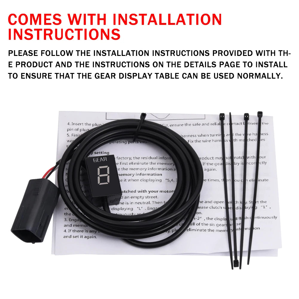 Helppoa asennusta ja monipuolista sijoittamista varten suunniteltu näyttö on tarpeeksi kompakti asennettavaksi melkein mihin tahansa. Laite oppii automaattisesti, kun se on kytketty, poistaen monimutkaisen ohjelmoinnin tai painikkeet. Tärkeää: pyörässäsi ei välttämättä ole vaihteen sijaintianturia. Vaihteen tiedot määritetään, kun moottori on käynnissä ja kytkin on vapautettu, lukemalla tietoja suoraan ECU:sta luotettavien lukemien saamiseksi.