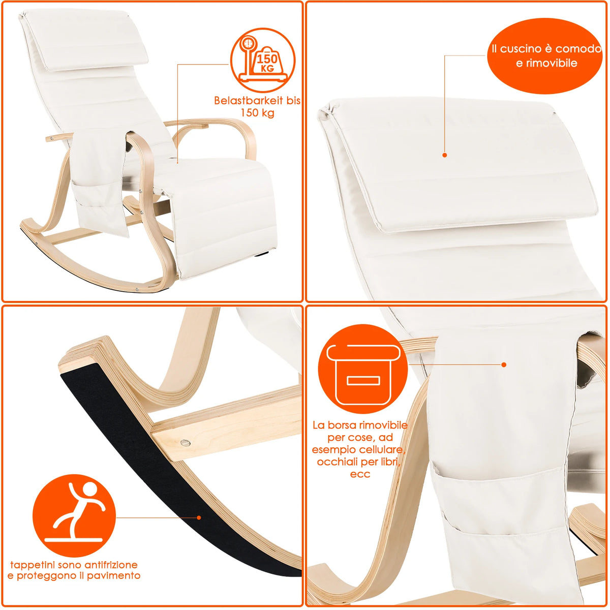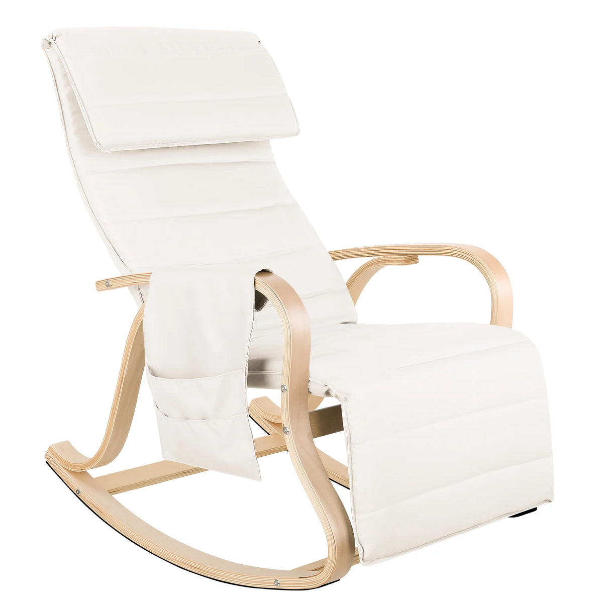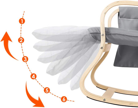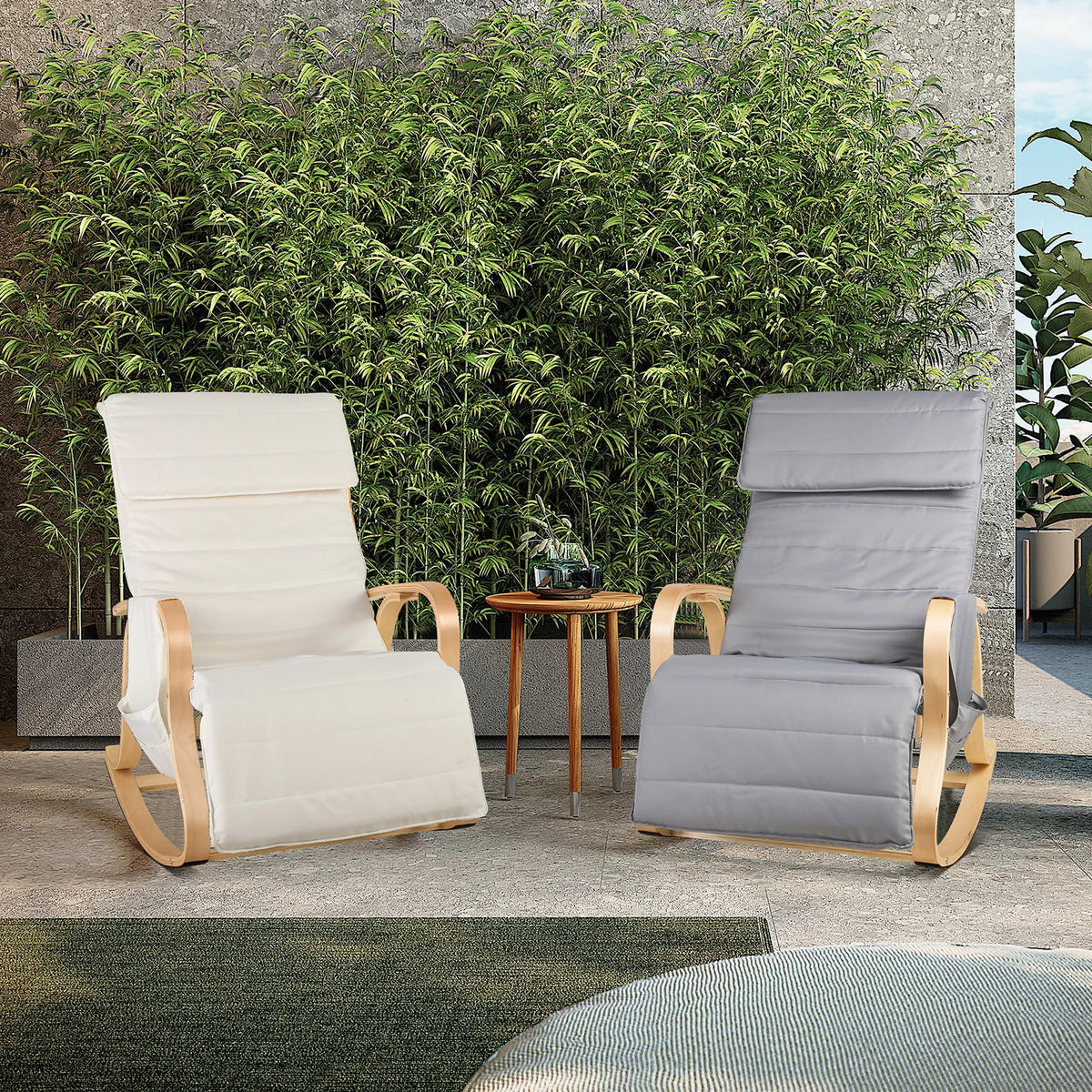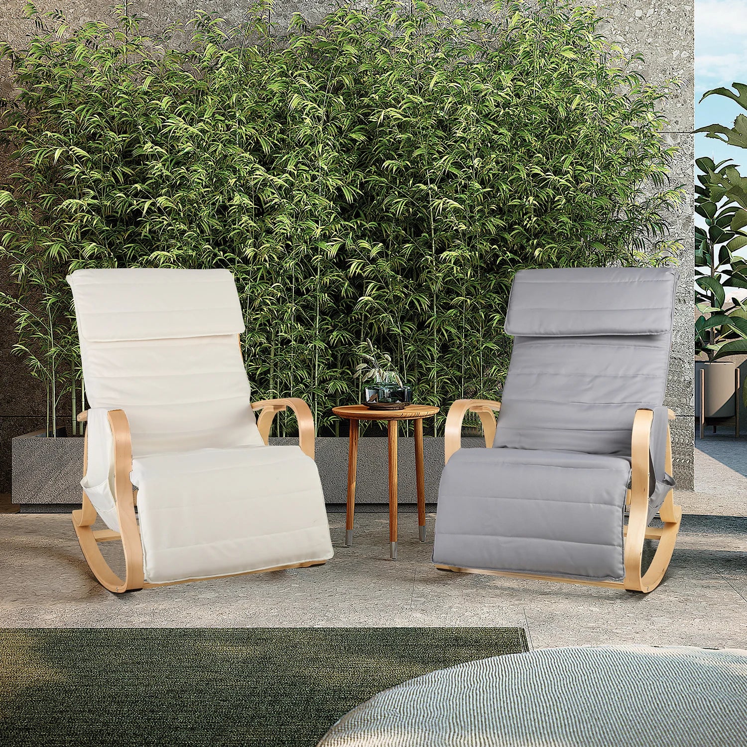 Koe kodikas ylellisyys Getone Rocking Nursing Chair With Armrests Footrest -tuolilla harmaana. Tämä tyylikäs tuoli yhdistää minimalistisen modernin muotoilun käytännölliseen mukavuuteen, muuttaen minkä tahansa parvekkeen, olohuoneen, makuuhuoneen, puutarhan tai terassin kutsuvaksi pakopaikaksi. Se on rakennettu tukevasta koivupuukehyksestä, jossa on tukeva sisärakenne, ja se keinuu sujuvasti lievittääkseen jännitystä ja edistääkseen rentoutumista, mikä tekee siitä täydellisen lukemiseen, imettämiseen tai yksinkertaisesti rentoutumiseen pitkän päivän jälkeen.
