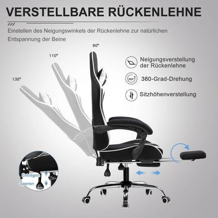- 1 x GTPLAYER Kangas Ergonominen Toimistopeli Tuoli GT800A-FA