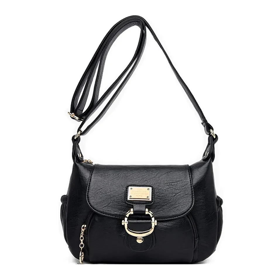 - 1 x Ladies Luxury Brand Leather Shoulder Bag (PU-ulkopinta, yksivärinen, pehmeä läppä paljettikoristeella)