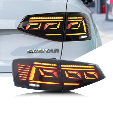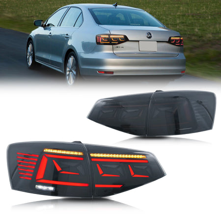 Jetta MK6 LED Takavalot 2015-2018 – Sekventiaaliset Signaalit — Korkeasti iskunkestävä LED-takavalosarja, joka on suunniteltu parantamaan turvallisuutta ja tyyliä sekventiaalisten vilkkujen, tehokkaan 3400 LMM:n valotehon ja kestävän ABS-kotelon avulla 12V-autokäyttöön.