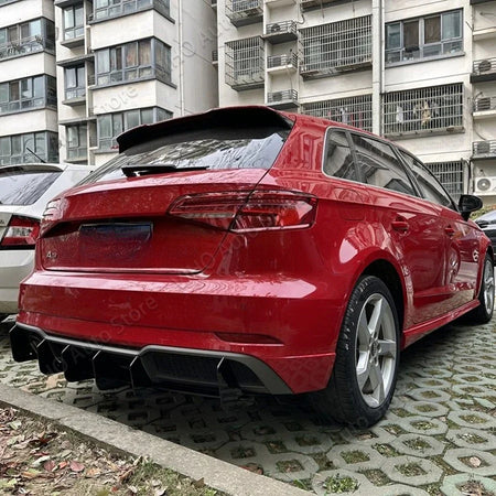 - Rohkea visuaalinen päivitys: Lisää terävän, hai-inspiroituneen ilmeen Audi A3 8V S-Line Hatchbackin takaosaan.
