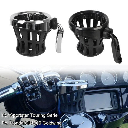 Olitpa sitten moottoritiellä tai kiemurtelevilla vuoristoteillä, tämä teline tarjoaa luotettavan, puoliksi integroidun ratkaisun nesteytykseen. Se on yhteensopiva Honda Goldwing GL1800 -malleihin vuodesta 2018 eteenpäin sekä laajaan valikoimaan Harley-Davidsonin touring-malleja, kuten Sportster XL, XL883, XL1200 ja Touring-muunnelmat. Valitse kromin tai mustan viimeistelyn välillä, jotta se sopii moottoripyöräsi estetiikkaan, ja nauti vain 100 mm:n korkeudesta ja 87 mm:n halkaisijasta—riittävän pieni, jotta se ei häiritse ajoa tai säilytystilaa.