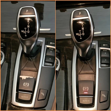 - Palauta moitteeton kojelaudan ilme vaihtamalla kulunut tai naarmuuntunut käsijarrun suojus tarkalla P-nappikytkimen suojuksella, joka sopii saumattomasti BMW:si ohjauspaneeliin.