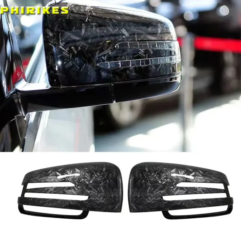 Päivitä ja suojaa Mercedes-Benzisi Mercedes Benz Peilinkannet Hiilikuitu Kiiltävä Musta ABS:llä phirikesiltä. Tämä tyylikäs kosmeettinen päivitys käyttää kestäviä ABS-muoveja hiilikuitu kiiltävällä pinnalla antaakseen autollesi rohkean, premium-ilmeen samalla suojaten alkuperäisiä peilikoteloita päivittäiseltä kulumiselta.